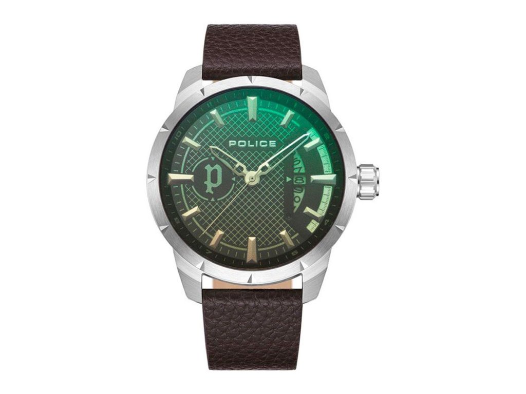 HODINKY POLICE MAN PEWJB2226902 (45MM). Typ mechanizmu: QUARTZ. Displej: DISPLEJ: ANALÓGOVÝ. Materiál puzdra: MATERIÁL: NEHRDZAVEJÚCA OCEĽ. Farba puzdra: FARBA PUZDRA: ŠEDÁ. Materiál náramku: MATERIÁL NÁRAMKU: KOŽA. Farba náramku: FARBA NÁRAMKU: HNEDÁ. Farba ciferníka: ZELENÁ. Typ skla: SKLÍČKO: MINERÁLNE. Kľučka: BUCKLE. Priemer ciferníka: dĹŽKA CIFERNÍKA: 45MM. Ponorný: 5ATM
