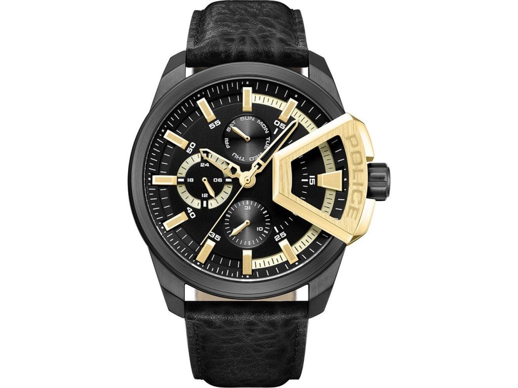 HODINKY POLICE MAN PEWJF0005704 (46MM). Typ mechanizmu: QUARTZ. Displej: DISPLEJ: ANALÓGOVÝ. Materiál puzdra: MATERIÁL: NEHRDZAVEJÚCA OCEĽ. Farba puzdra: FARBA PUZDRA: ČIERNA. Materiál náramku: MATERIÁL NÁRAMKU: KOŽA. Farba náramku: FARBA NÁRAMKU: ČIERNA. Farba ciferníka: ČIERNA. Typ skla: SKLÍČKO: MINERÁLNE. Kľučka: BUCKLE. Priemer ciferníka: dĹŽKA CIFERNÍKA: 46MM. Ponorný: 5ATM
