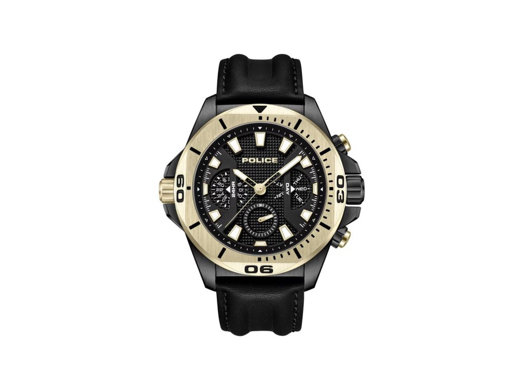 HODINKY POLICE MAN PEWJF0022501 (46MM). Typ mechanizmu: QUARTZ. Displej: DISPLEJ: ANALÓGOVÝ. Materiál puzdra: MATERIÁL: NEHRDZAVEJÚCA OCEĽ. Farba puzdra: FARBA PUZDRA: ČIERNA. Materiál náramku: MATERIÁL NÁRAMKU: SYNTETICKÁ KOŽA. Farba náramku: FARBA NÁRAMKU: ČIERNA. Farba ciferníka: ČIERNA. Typ skla: SKLÍČKO: MINERÁLNE. Kľučka: BUCKLE. Priemer ciferníka: dĹŽKA CIFERNÍKA: 46MM. Ponorný: 5ATM