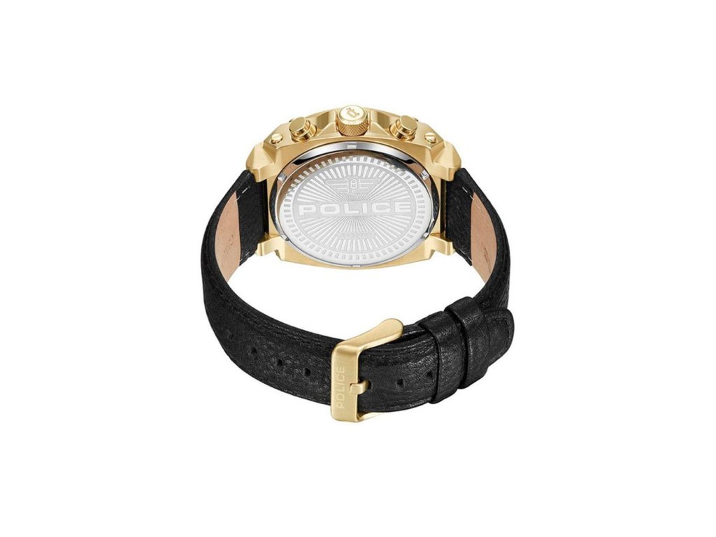 HODINKY POLICE MAN PEWJF2226801 (45,4MM). Typ mechanizmu: QUARTZ. Displej: DISPLEJ: ANALÓGOVÝ. Materiál puzdra: MATERIÁL: NEHRDZAVEJÚCA OCEĽ. Farba puzdra: FARBA: ZLATÁ. Materiál náramku: MATERIÁL NÁRAMKU: KOŽA. Farba náramku: FARBA NÁRAMKU: ČIERNA. Farba ciferníka: ČIERNA. Typ skla: SKLÍČKO: MINERÁLNE. Kľučka: BUCKLE. Priemer ciferníka: dĹŽKA CIFERNÍKA: 45,4 MM. Ponorný: NE