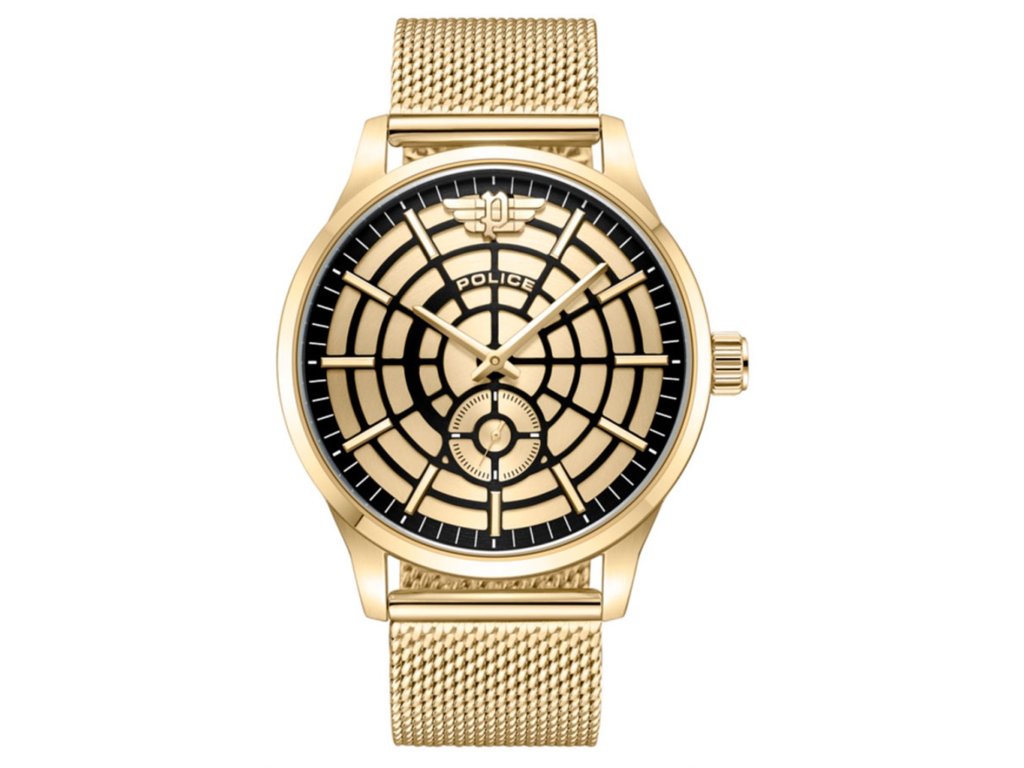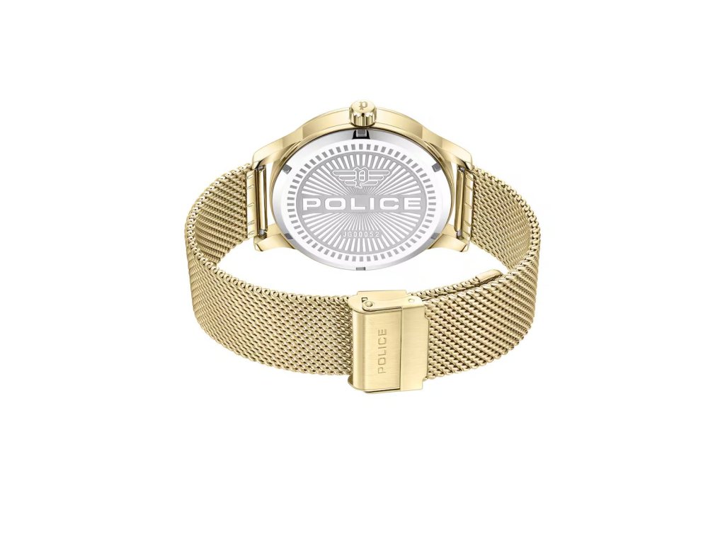 HODINKY POLICE MAN PEWJG0005203 (44MM). Typ mechanizmu: QUARTZ. Displej: DISPLEJ: ANALÓGOVÝ. Materiál puzdra: MATERIÁL: NEHRDZAVEJÚCA OCEĽ. Farba puzdra: FARBA: ZLATÁ. Materiál náramku: MATERIÁL NÁRAMKU: NEHRDZAVEJÚCA OCEĽ. Farba náramku: ZLATÁ. Farba ciferníka: ZLATÁ. Typ skla: MINERÁLNE. Sklo: TLAK. Priemer ciferníka: dĹŽKA CIFERNÍKA: 44MM. Ponorný: 5ATM