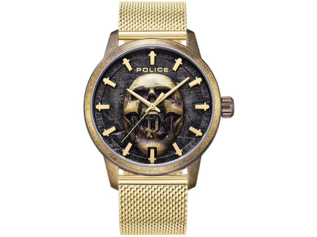 HODINKY POLICE MAN PEWJG0005504 (44MM). Typ mechanizmu: QUARTZ. Displej: DISPLEJ: ANALÓGOVÝ. Materiál puzdra: MATERIÁL: NEHRDZAVEJÚCA OCEĽ. Farba puzdra: FARBA: ZLATÁ. Materiál náramku: MATERIÁL NÁRAMKU: NEHRDZAVEJÚCA OCEĽ. Farba náramku: ZLATÁ. Farba ciferníka: ČIERNA. Typ skla: MINERÁLNE. Clousure: TLAK. Priemer ciferníka: dĹŽKA CIFERNÍKA: 44MM. Ponorný: 5ATM