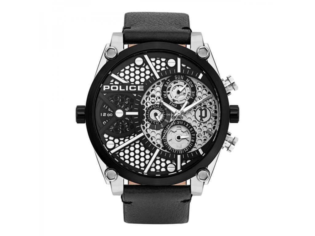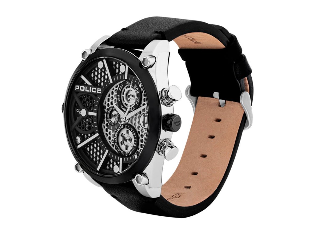 HODINKY POLICE MAN PL15381JSTB04 (51MM). Typ mechanizmu: QUARTZ. Displej: DISPLEJ: ANALÓGOVÝ. Materiál puzdra: MATERIÁL: NEHRDZAVEJÚCA OCEĽ. Farba puzdra: FARBA PUZDRA: ŠEDÁ. Materiál náramku: MATERIÁL NÁRAMKU: KOŽA. Farba náramku: FARBA NÁRAMKU: ČIERNA. Farba ciferníka: FARBA CIFERNÍKA: ŠEDÁ. Typ skla: SKLÍČKO: MINERÁLNE. Kľučka: BUCKLE. Priemer ciferníka: pRIEMER CIFERNÍKA: 51 MM. Ponorný: 5ATM