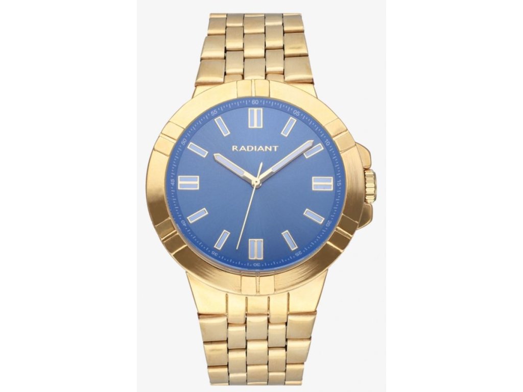 HODINKY RADIANT MAN RA635203 (44MM). Typ mechanizmu: QUARTZ. Displej: HODINKY: ANALOGICKÉ. Materiál puzdra: MATERIÁL: NEHRDZAVEJÚCA OCEĽ. Farba puzdra: FARBA: ZLATÁ. Materiál náramku: MATERIÁL NÁRAMKU: NEHRDZAVEJÚCA OCEĽ. Farba náramku: ZLATÁ. Farba ciferníka: MODRÁ. Typ skla: SKLÍČKO: MINERÁLNE. Clousure: TLAK. Priemer ciferníka: dĹŽKA CIFERNÍKA: 44MM. Ponorný: 5ATM