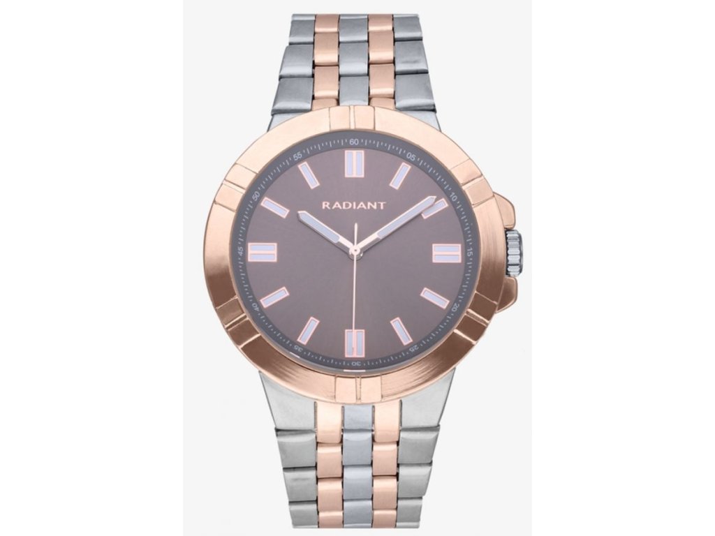 HODINKY RADIANT MAN RA635204 (44MM). Typ mechanizmu: QUARTZ. Displej: DISPLEJ: ANALÓGOVÝ. Materiál puzdra: MATERIÁL: NEHRDZAVEJÚCA OCEĽ. Farba puzdra: FARBA PUZDRA: RUŽOVÁ. Materiál náramku: MATERIÁL NÁRAMKU: NEHRDZAVEJÚCA OCEĽ. Farba náramku: FARBA NÁRAMKU: ŠEDÁ. Farba ciferníka: HNEDÁ. Typ skla: SKLÍČKO: MINERÁLNE. Clousure: TLAK. Priemer ciferníka: dĹŽKA CIFERNÍKA: 44MM. Ponorný: 5ATM