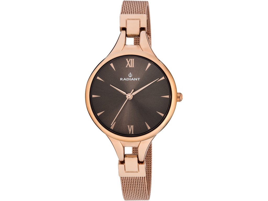 HODINKY RADIANT WOMAN RA423204 (34MM). Typ mechanizmu: QUARTZ. Displej: DISPLEJ: ANALÓGOVÝ. Materiál puzdra: MATERIÁL PUZDRA: OCEĽ. Farba puzdra: FARBA PUZDRA: RUŽOVÁ. Materiál náramku: MATERIÁL NÁRAMKU: OCEĽ. Farba náramku: FARBA NÁRAMKU: RUŽOVÁ. Farba ciferníka: HNEDÁ. Typ skla: SKLÍČKO: MINERÁLNE. Clousure: TLAK. Priemer ciferníka: dĹŽKA CIFERNÍKA: 34 MM. Ponorný: 5ATM