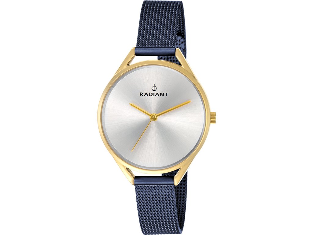 HODINKY RADIANT WOMAN RA432211 (34MM). Typ mechanizmu: QUARTZ. Displej: DISPLEJ: ANALÓGOVÝ. Materiál puzdra: MATERIÁL PUZDRA: KOV. Farba puzdra: ZLATÁ. Materiál náramku: MATERIÁL NÁRAMKU: OCEĽ. Farba náramku: FARBA NÁRAMKU: MODRÁ. Farba ciferníka: STRIEBORNÁ. Typ skla: SKLÍČKO: MINERÁLNE. Clousure: . Priemer ciferníka: dĹŽKA CIFERNÍKA: 34MM. Ponorný: NE