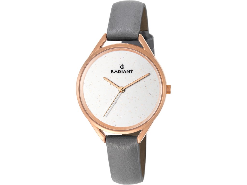 HODINKY RADIANT WOMAN RA432602 (34MM). Typ mechanizmu: QUARTZ. Displej: HODINKY: ANALÓGOVÉ. Materiál puzdra: MATERIÁL PUZDRA: KOV. Farba puzdra: FARBA PUZDRA: RUŽOVÉ ZLATO. Materiál náramku: MATERIÁL NÁRAMKU: KOŽA. Farba náramku: FARBA NÁRAMKU: ŠEDÁ. Farba ciferníka: BIELA. Typ skla: SKLÍČKO: MINERÁLNE. Clousure: . Priemer ciferníka: dĹŽKA CIFERNÍKA: 34MM. Ponorný: NE