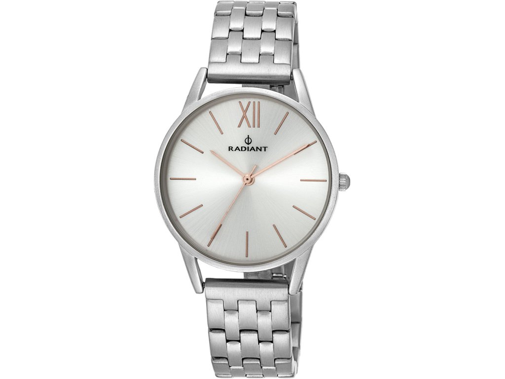 HODINKY RADIANT WOMAN RA438201 (35MM). Typ mechanizmu: QUARTZ. Displej: TYP: ANALOGICO. Materiál puzdra: MATERIÁL PUZDRA: OCEĽ. Farba puzdra: STRIEBORNÁ: FARBA PUZDRA: STRIEBORNÁ. Materiál náramku: MATERIÁL NÁRAMKU: OCEĽ. Farba náramku: STRIEBORNÁ FARBA NÁRAMKU. Farba ciferníka: STRIEBORNÁ. Typ skla: MINERÁLNE. Clousure: TLAKOVÁ. Priemer ciferníka: dĹŽKA CIFERNÍKA: 35 MM. Ponorný: 5ATM