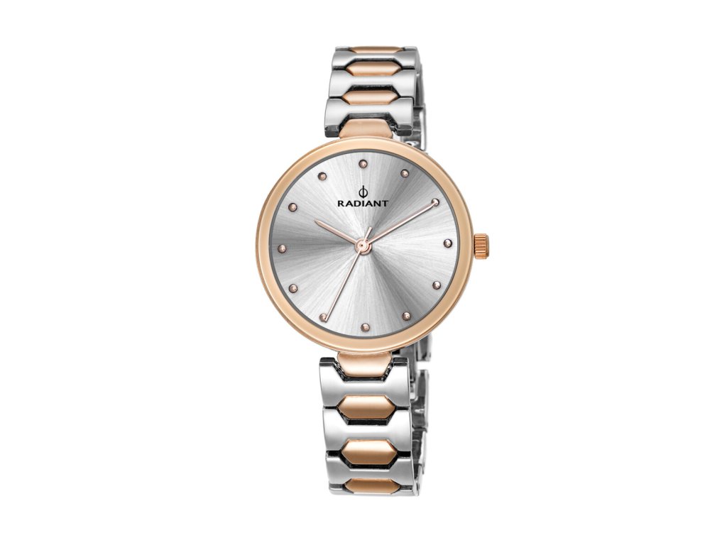 HODINKY RADIANT WOMAN RA443205 (34MM). Typ mechanizmu: QUARTZ. Displej: TYP: ANALÓGOVÝ. Materiál puzdra: MATERIÁL PUZDRA: KOV. Farba puzdra: FARBA PUZDRA: RUŽOVÉ ZLATO. Materiál náramku: MATERIÁL NÁRAMKU: KOV. Farba náramku: FARBA NÁRAMKU: BICOLORED. Farba ciferníka: OCEL. Typ skla: SKLÍČKO: MINERÁLNE. Clousure: . Priemer ciferníka: dĹŽKA CIFERNÍKA: 34MM. Ponorný: NE