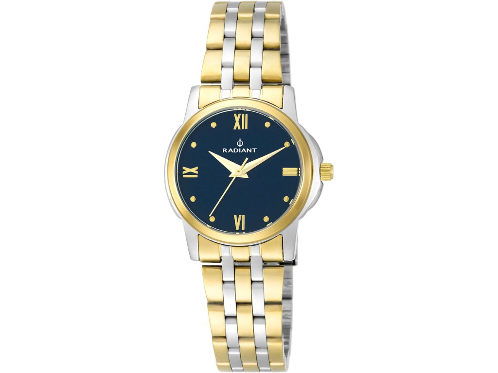 HODINKY RADIANT WOMAN RA453203 (28MM). Typ mechanizmu: QUARTZ. Displej: DISPLEJ: ANALÓGOVÝ. Materiál puzdra: MATERIÁL PUZDRA: OCEĽ. Farba puzdra: ZLATÁ. Materiál náramku: MATERIÁL NÁRAMKU: OCEĽ. Farba náramku: FARBA NÁRAMKU: BICOLORED. Farba ciferníka: MODRÁ. Typ skla: SKLÍČKO: MINERÁLNE. Clousure: . Priemer ciferníka: dĹŽKA CIFERNÍKA: 28 MM. Ponorný: 5ATM