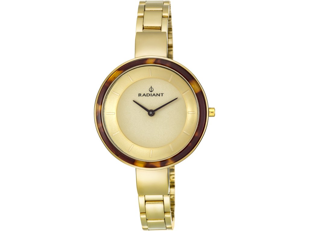 HODINKY RADIANT WOMAN RA460202 (35MM). Typ mechanizmu: QUARTZ. Displej: TYP: ANALÓGOVÝ. Materiál puzdra: MATERIÁL PUZDRA: OCEĽ. Farba puzdra: ZLATÁ. Materiál náramku: MATERIÁL NÁRAMKU: OCEĽ. Farba náramku: FARBA NÁRAMKU: ZLATÁ. Farba ciferníka: ZLATÁ. Typ skla: MINERÁLNE. Sklo: TLAK. Priemer ciferníka: dĹŽKA CIFERNÍKA: 35 MM. Ponorný: NE