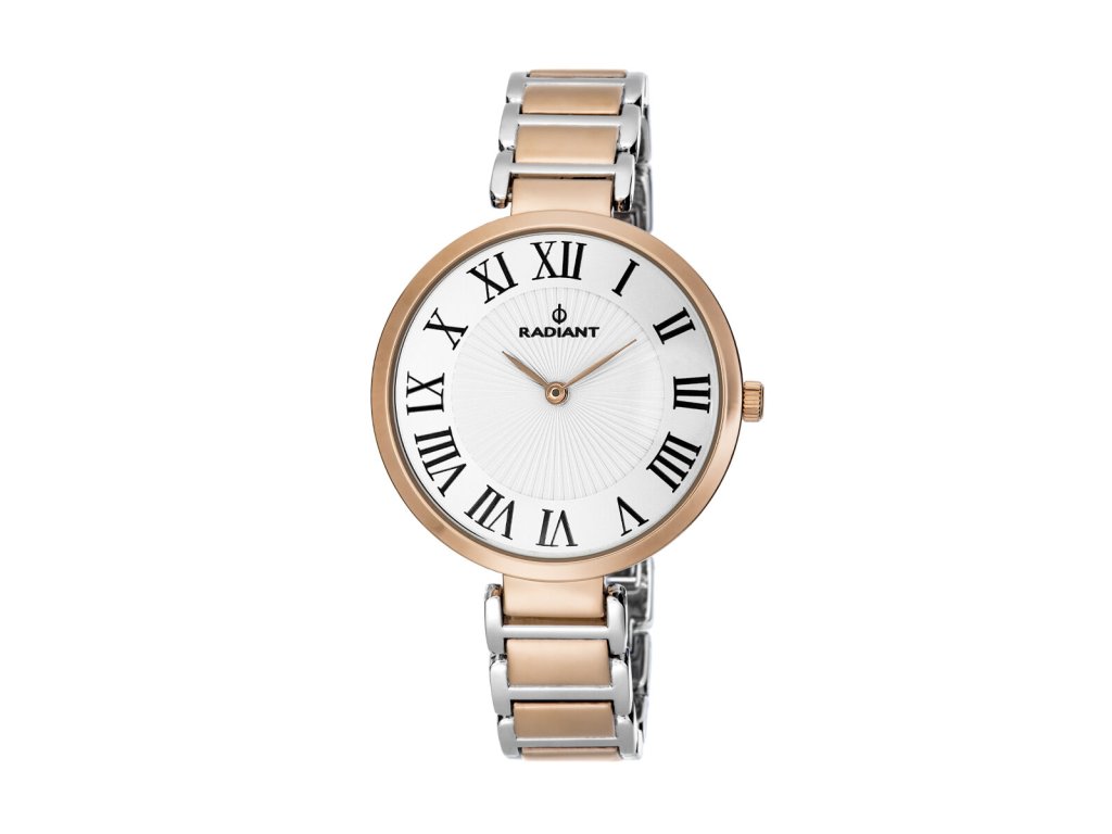 HODINKY RADIANT WOMAN RA461203 (36MM). Typ mechanizmu: QUARTZ. Displej: HODINKY: ANALÓGOVÉ. Materiál puzdra: MATERIÁL PUZDRA: OCEĽ. Farba puzdra: FARBA PUZDRA: RUŽOVÉ ZLATO. Materiál náramku: MATERIÁL NÁRAMKU: OCEĽ. Farba náramku: FARBA NÁRAMKU: BICOLOR. Farba ciferníka: STRIEBORNÁ/ŽLTÁ. Typ skla: SKLÍČKO: MINERÁLNE. Clousure: TLAČ. Priemer ciferníka: dĹŽKA CIFERNÍKA: 36 MM. Ponorný: NE