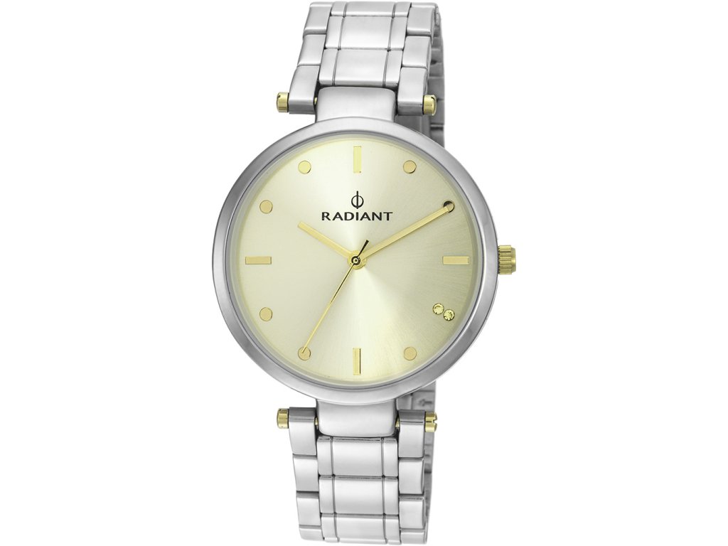 HODINKY RADIANT WOMAN RA468203 (34MM). Typ mechanizmu: QUARTZ. Displej: DISPLEJ: ANALÓGOVÝ. Materiál puzdra: MATERIÁL PUZDRA: OCEĽ. Farba puzdra: STRIEBORNÁ/ZELENÁ. Materiál náramku: MATERIÁL NÁRAMKU: OCEĽ. Farba náramku: STRIEBORNÁ/ZELENÁ. Farba ciferníka: ZLATÁ. Typ skla: MINERÁLNE. Sklo: TLAK. Priemer ciferníka: dĹŽKA CIFERNÍKA: 34 MM. Ponorný: NE