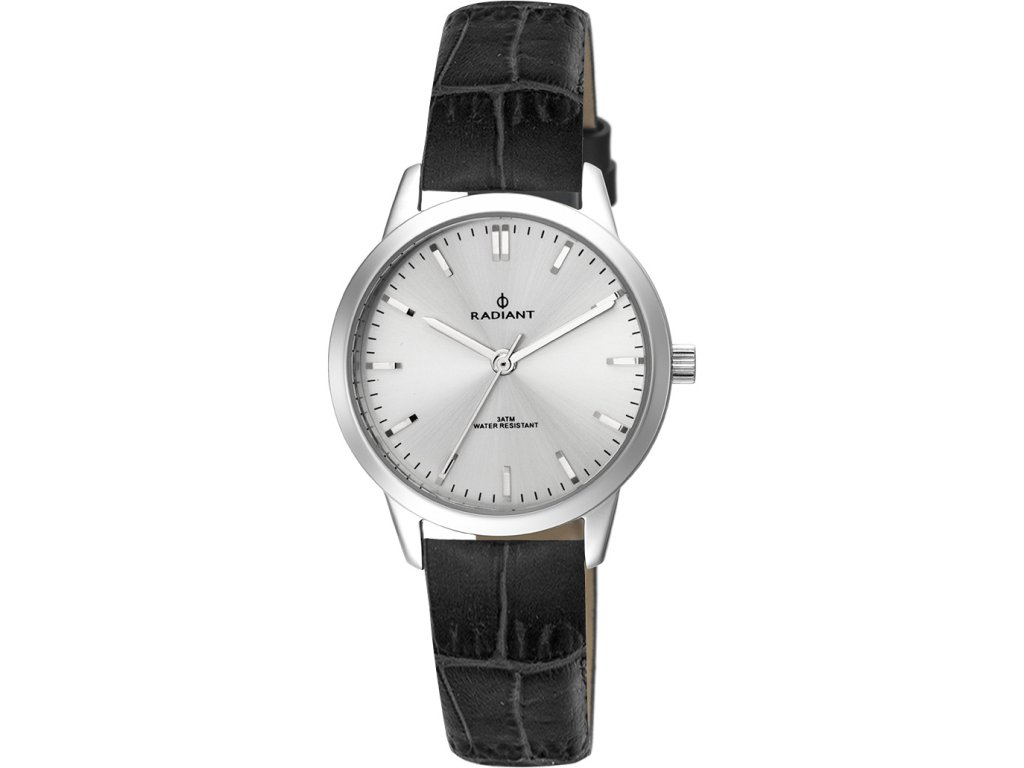 HODINKY RADIANT WOMAN RA482604 (30MM). Typ mechanizmu: QUARTZ. Displej: HODINKY: ANALÓGOVÉ. Materiál puzdra: MATERIÁL PUZDRA: OCEĽ. Farba puzdra: STRIEBORNÁ: FARBA PUZDRA: STRIEBORNÁ. Materiál náramku: MATERIÁL NÁRAMKU: KOŽA. Farba náramku: FARBA NÁRAMKU: ČIERNA. Farba ciferníka: BIELA. Typ skla: SKLÍČKO: MINERÁLNE. Kľučka: BUCKLE. Priemer ciferníka: dĹŽKA CIFERNÍKA: 30MM. Ponorný: NE