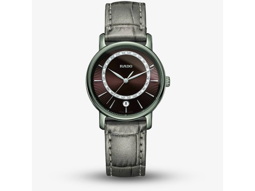 HODINKY RADO WOMAN R14064735 (33MM). Typ mechanizmu: QUARTZ. Displej: TYP: ANALÓGOVÝ. Materiál puzdra: MATERIÁL: NEHRDZAVEJÚCA OCEĽ. Farba puzdra: FARBA PUZDRA: ŠEDÁ. Materiál náramku: MATERIÁL NÁRAMKU: KOŽA. Farba náramku: FARBA NÁRAMKU: ŠEDÁ. Farba ciferníka: HNEDÁ. Typ skla: SKLÍČKO: SAPPHIRE. Kľučka: BUCKLE. Priemer ciferníka: dĹŽKA CIFERNÍKA: 33 MM. Ponorný: hĹBKA: 3ATM
