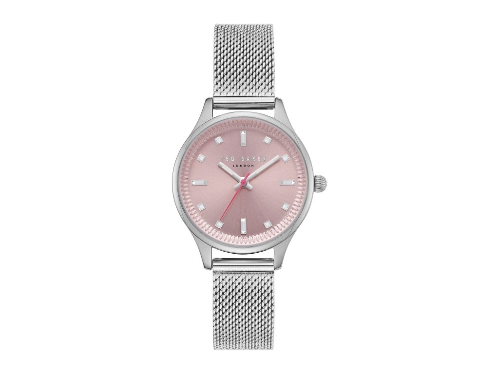 HODINKY TED BAKER WOMAN TE50650001 (32MM). Typ mechanizmu: QUARTZ. Displej: HODINKY: ANALÓGOVÉ. Materiál puzdra: MATERIÁL PUZDRA: OCEĽ. Farba puzdra: STRIEBORNÁ: FARBA PUZDRA: STRIEBORNÁ. Materiál náramku: MATERIÁL NÁRAMKU: OCEĽ. Farba náramku: STRIEBORNÁ FARBA NÁRAMKU. Farba ciferníka: FARBA CIFERNÍKA: RUŽOVÁ. Typ skla: SKLÍČKO: MINERÁLNE. Sklo: TLAK. Priemer ciferníka: dĹŽKA CIFERNÍKA: 32 MM. Ponorný: NE
