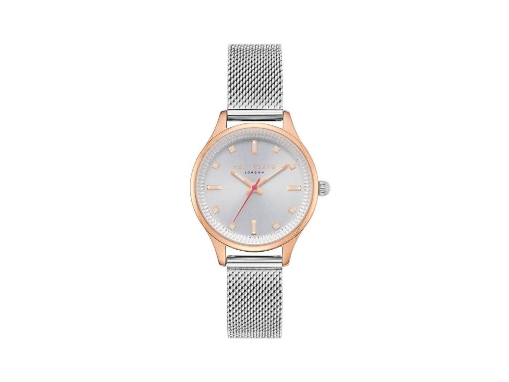 HODINKY TED BAKER WOMAN TE50650003 (32MM). Typ mechanizmu: QUARTZ. Displej: HODINKY: ANALÓGOVÉ. Materiál puzdra: MATERIÁL PUZDRA: OCEĽ. Farba puzdra: FARBA PUZDRA: RUŽOVÁ. Materiál náramku: MATERIÁL NÁRAMKU: OCEĽ. Farba náramku: STRIEBORNÁ FARBA NÁRAMKU. Farba ciferníka: FARBA CIFERNÍKA: ŠEDÁ. Typ skla: SKLÍČKO: MINERÁLNE. Sklo: TLAK. Priemer ciferníka: dĹŽKA CIFERNÍKA: 32 MM. Ponorný: NE