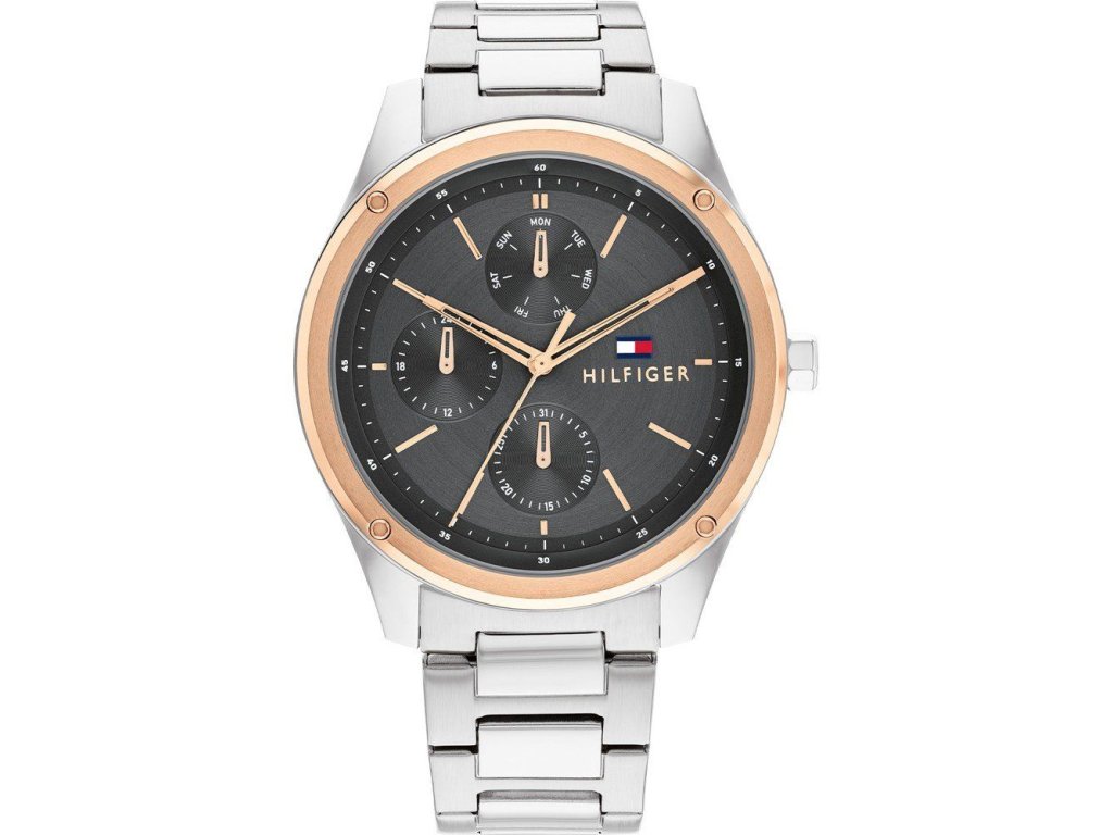 HODINKY TOMMY HILFIGER MAN 1710541 (44MM). Typ mechanizmu: QUARTZ. Displej: HODINKY: ANALOGICKÉ. Materiál puzdra: MATERIÁL: NEHRDZAVEJÚCA OCEĽ. Farba puzdra: FARBA PUZDRA: ŠEDÁ. Materiál náramku: MATERIÁL NÁRAMKU: NEHRDZAVEJÚCA OCEĽ. Farba náramku: FARBA NÁRAMKU: ŠEDÁ. Farba ciferníka: ČIERNA. Typ skla: SKLÍČKO: MINERÁLNE. Clousure: BUTTERFLY. Priemer ciferníka: dĹŽKA CIFERNÍKA: 44MM. Ponoriteľnosť: 5ATM