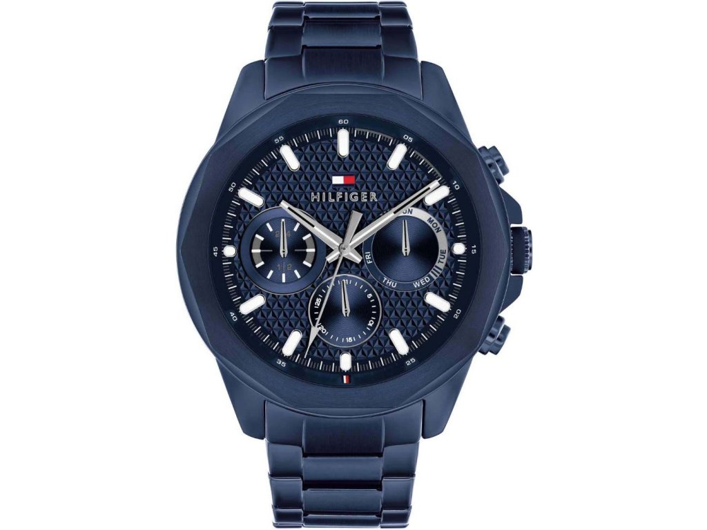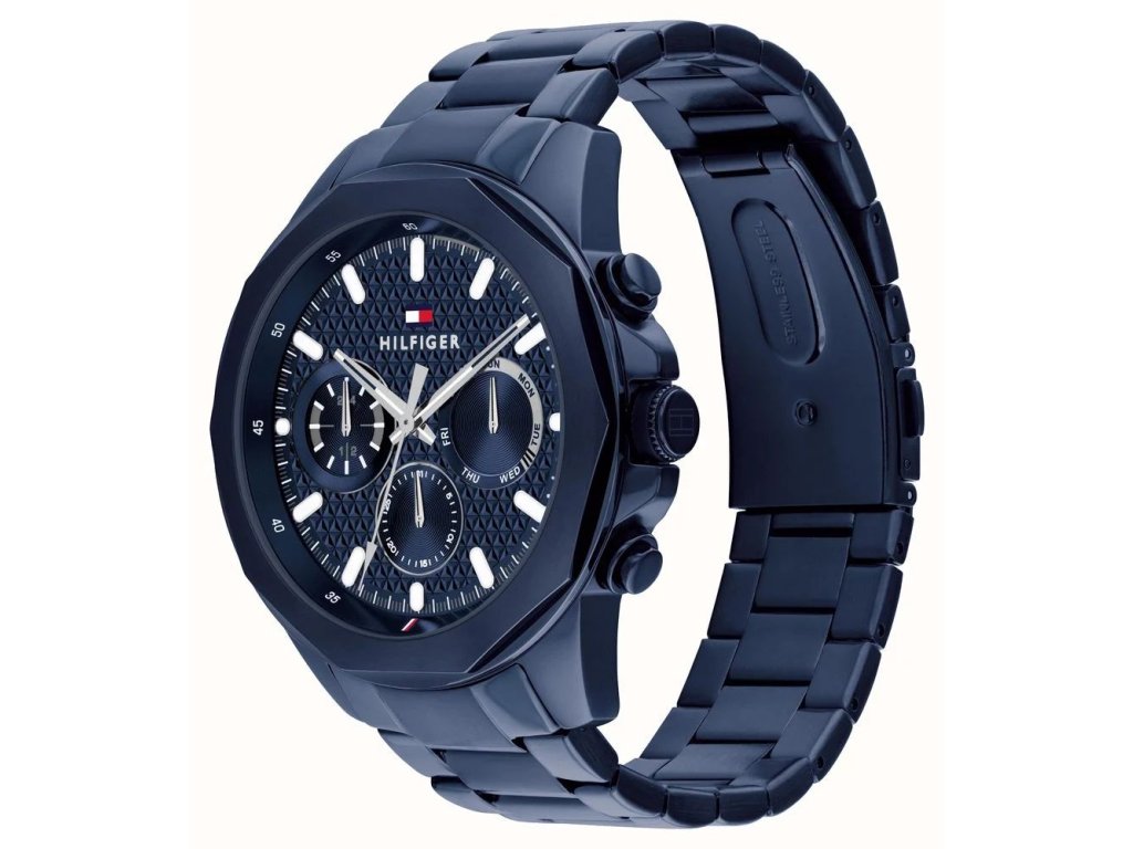 HODINKY TOMMY HILFIGER MAN 1710652 (46MM). Typ mechanizmu: QUARTZ. Displej: HODINKY: ANALOGICKÉ. Materiál puzdra: MATERIÁL: NEHRDZAVEJÚCA OCEĽ. Farba puzdra: FARBA: MODRÁ. Materiál náramku: MATERIÁL NÁRAMKU: NEHRDZAVEJÚCA OCEĽ. Farba náramku: FARBA NÁRAMKU: MODRÁ. Farba ciferníka: MODRÁ. Typ skla: SKLÍČKO: MINERÁLNE. Clousure: SKLENENÉ SKLO: DETAKTÍVNE. Priemer ciferníka: dĹŽKA CIFERNÍKA: 46 MM. Ponorný: 5ATM