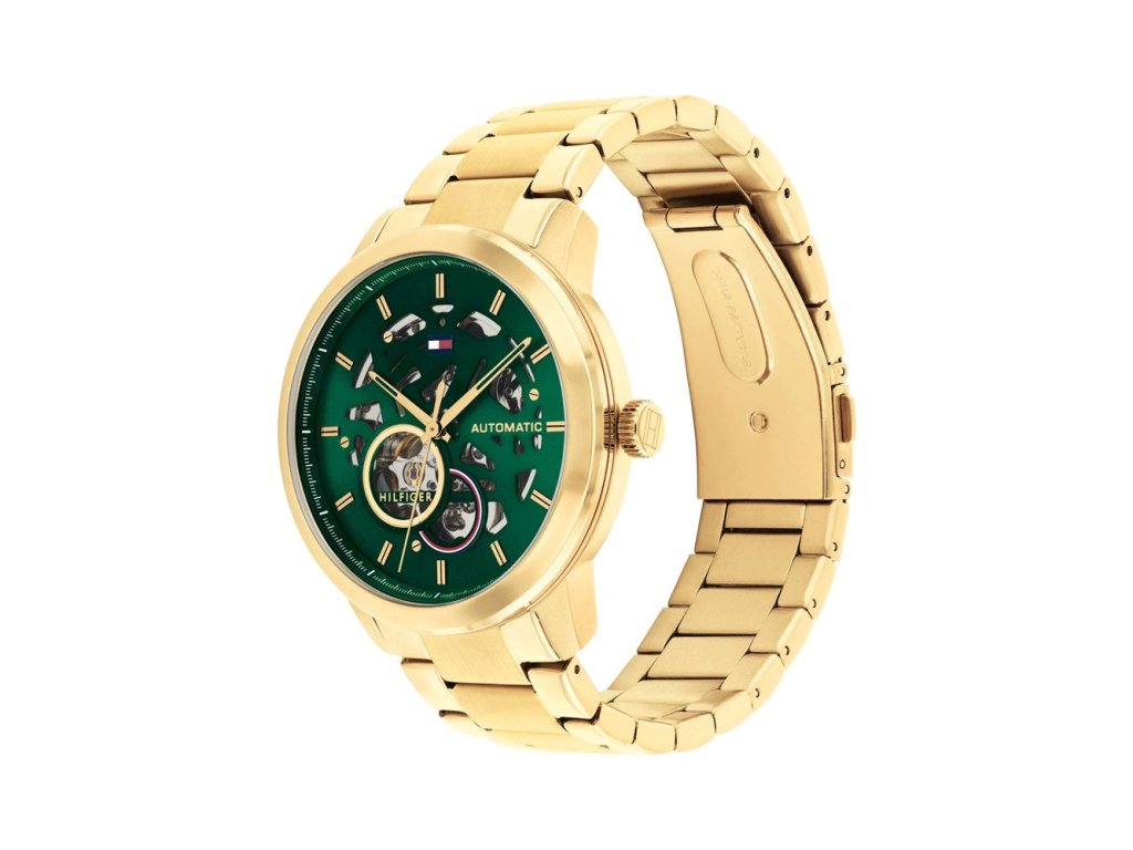 HODINKY TOMMY HILFIGER MAN 1710662 (43MM). Typ mechanizmu: TYP: AUTOMATICKÝ. Displej: TYP: ANALÓGOVÝ. Materiál puzdra: MATERIÁL: NEREZOVÁ OCEĽ. Farba puzdra: FARBA: ZLATÁ. Materiál náramku: MATERIÁL NÁRAMKU: NEHRDZAVEJÚCA OCEĽ. Farba náramku: ZLATÁ. Farba ciferníka: ZELENÁ. Typ skla: SKLÍČKO: MINERÁLNE. Sklo: DOPLNITEĽNÉ. Priemer ciferníka: dĹŽKA CIFERNÍKA: 43 MM. Ponorný: 5ATM