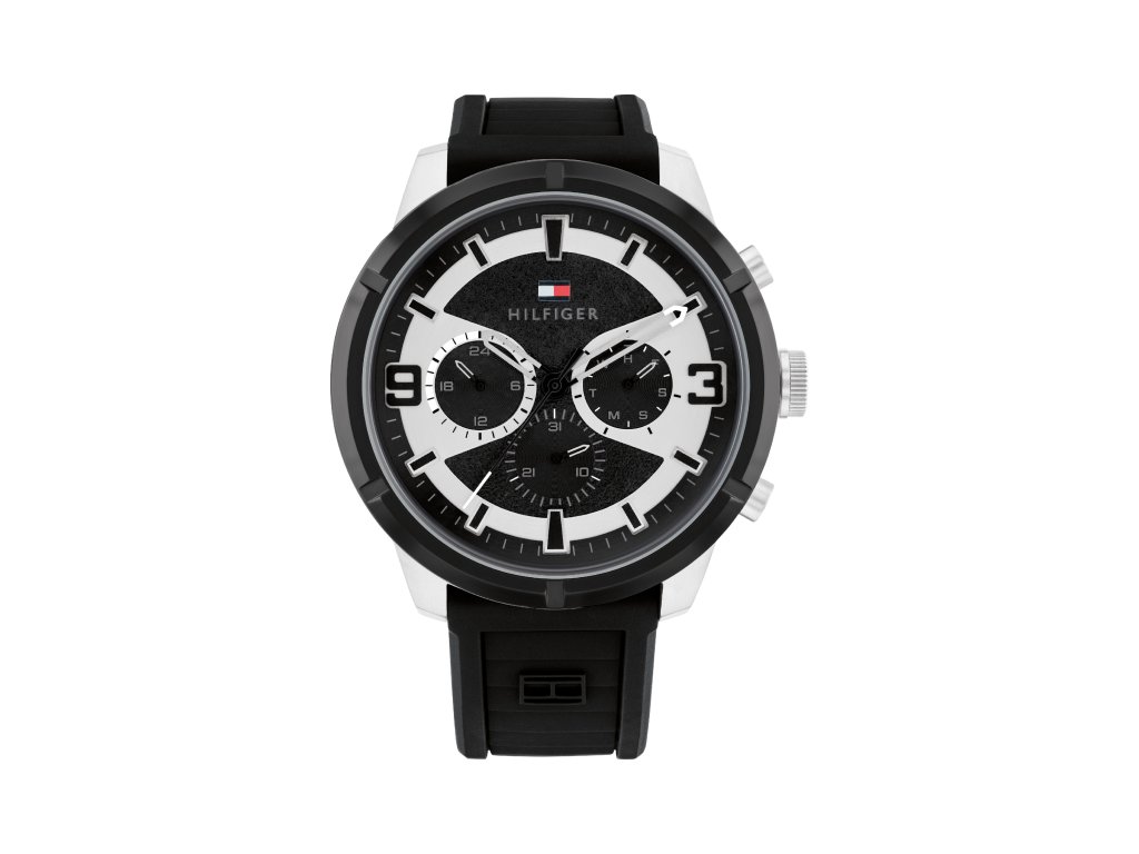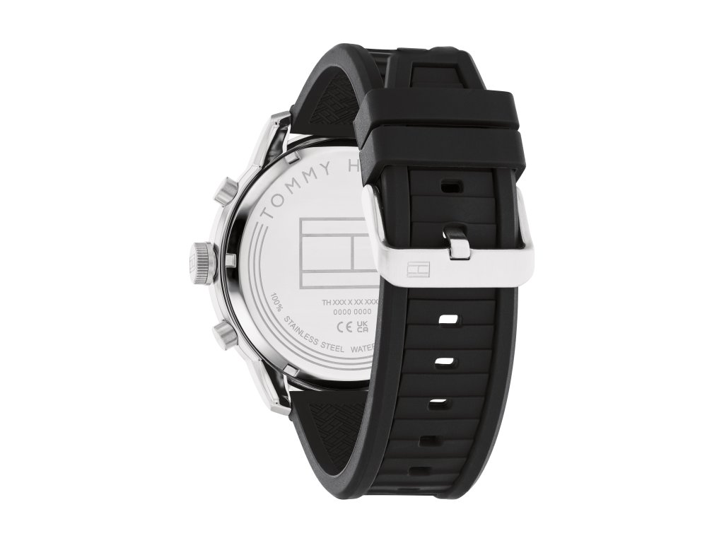 HODINKY TOMMY HILFIGER MAN 1792074 (44MM). Typ mechanizmu: QUARTZ. Displej: HODINKY: ANALOGICKÉ. Materiál puzdra: MATERIÁL: NEHRDZAVEJÚCA OCEĽ. Farba puzdra: FARBA PUZDRA: ŠEDÁ. Materiál náramku: MATERIÁL NÁRAMKU: SILIKÓN. Farba náramku: FARBA NÁRAMKU: ČIERNA. Farba ciferníka: ČIERNA. Typ skla: MINERÁLNE. Kľučka: BUCKLE. Priemer ciferníka: dĹŽKA CIFERNÍKA: 44MM. Ponoriteľnosť: 5ATM