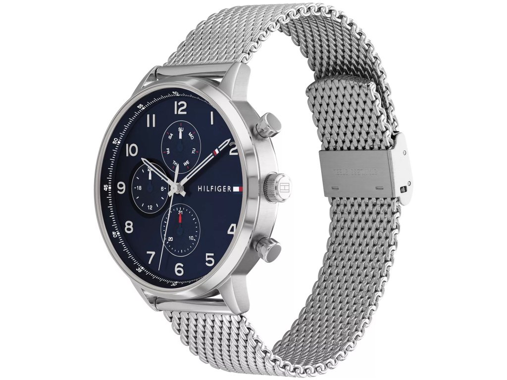 HODINKY TOMMY HILFIGER MAN 1792078 (44MM). Typ mechanizmu: QUARTZ. Displej: HODINKY: ANALOGICKÉ. Materiál puzdra: MATERIÁL: NEHRDZAVEJÚCA OCEĽ. Farba puzdra: FARBA PUZDRA: ŠEDÁ. Materiál náramku: MATERIÁL NÁRAMKU: NEHRDZAVEJÚCA OCEĽ. Farba náramku: FARBA NÁRAMKU: ŠEDÁ. Farba ciferníka: MODRÁ. Typ skla: SKLÍČKO: MINERÁLNE. Clousure: NASTAVITEĽNÉ. Priemer ciferníka: dĹŽKA CIFERNÍKA: 44MM. Ponorný: 5ATM