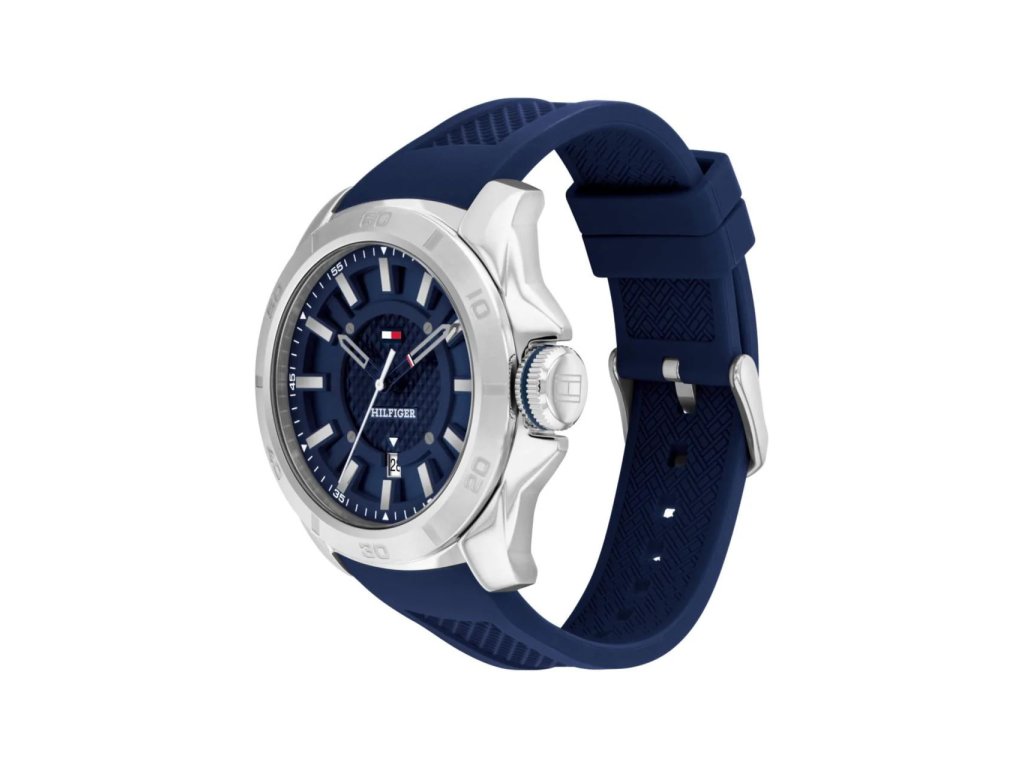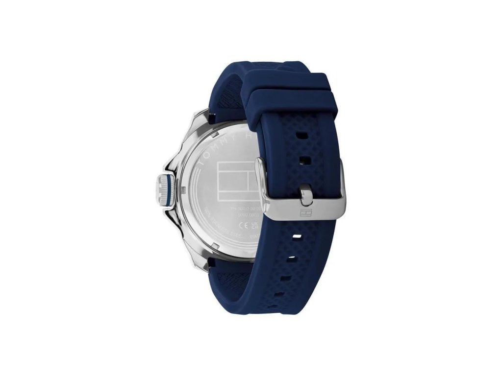 HODINKY TOMMY HILFIGER MAN 1792134 (48MM). Typ mechanizmu: QUARTZ. Displej: HODINKY: ANALOGICKÉ. Materiál puzdra: MATERIÁL: NEHRDZAVEJÚCA OCEĽ. Farba puzdra: FARBA PUZDRA: ŠEDÁ. Materiál náramku: MATERIÁL NÁRAMKU: SILIKÓN. Farba náramku: FARBA NÁRAMKU: MODRÁ. Farba ciferníka: MODRÁ. Typ skla: MINERÁLNE. Uzáver: BUCKLE. Priemer ciferníka: dĹŽKA CIFERNÍKA: 48 MM. Ponorný: 5ATM
