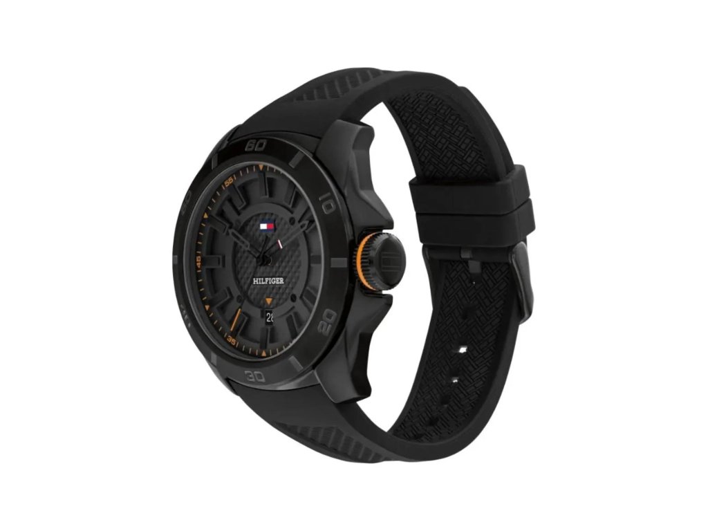 HODINKY TOMMY HILFIGER MAN 1792137 (49MM). Typ mechanizmu: QUARTZ. Displej: HODINKY: ANALÓGOVÉ. Materiál puzdra: MATERIÁL: NEHRDZAVEJÚCA OCEĽ. Farba puzdra: FARBA PUZDRA: ČIERNA. Materiál náramku: MATERIÁL NÁRAMKU: SILIKÓN. Farba náramku: FARBA NÁRAMKU: ČIERNA. Farba ciferníka: MODRÁ. Typ skla: SKLÍČKO: MINERÁLNE. Uzáver: BUCKLE. Priemer ciferníka: dĹŽKA CIFERNÍKA: 49 MM. Ponorný: 5ATM