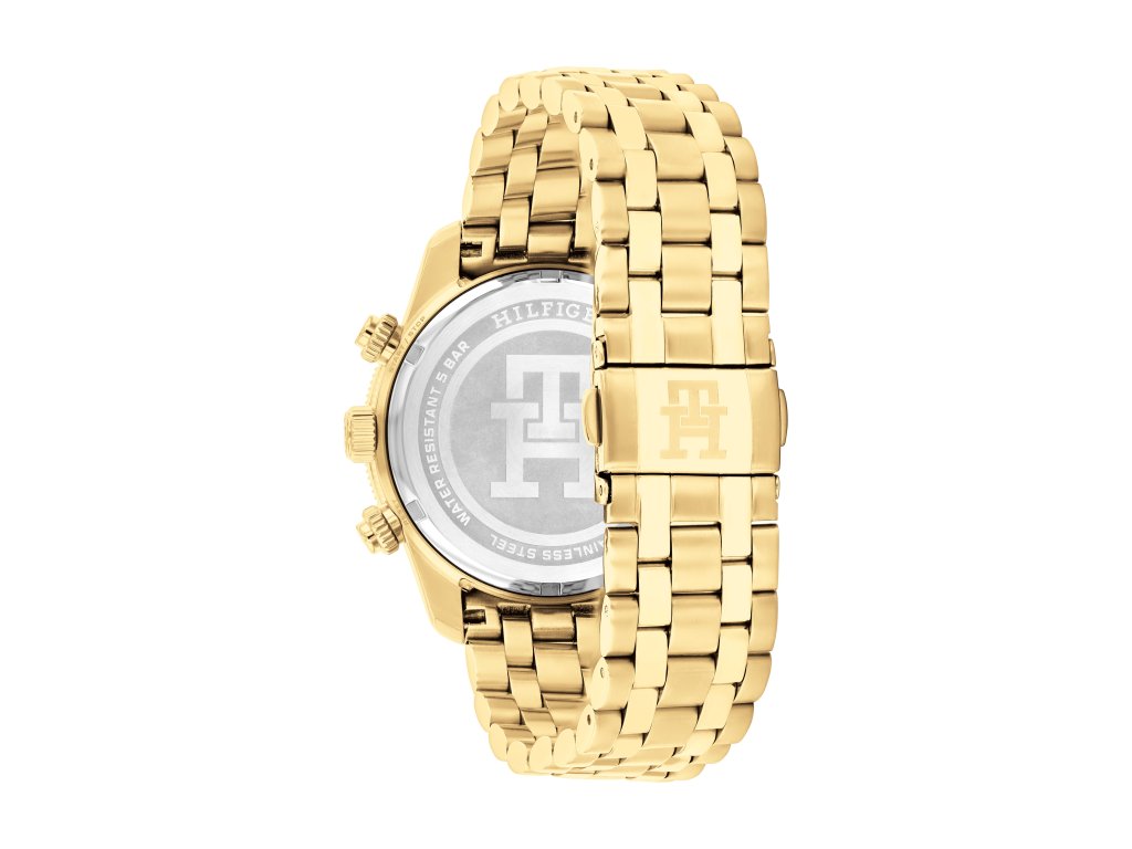 HODINKY TOMMY HILFIGER MAN 1792158 (41MM). Typ mechanizmu: QUARTZ. Displej: HODINKY: ANALOGICKÉ. Materiál puzdra: MATERIÁL: NEHRDZAVEJÚCA OCEĽ. Farba puzdra: FARBA: ZLATÁ. Materiál náramku: MATERIÁL NÁRAMKU: NEHRDZAVEJÚCA OCEĽ. Farba náramku: ZLATÁ. Farba ciferníka: MODRÁ. Typ skla: SKLÍČKO: MINERÁLNE. Clousure: TLAK. Priemer ciferníka: pRIEMER CIFERNÍKA: 41MM. Ponorný: 5ATM