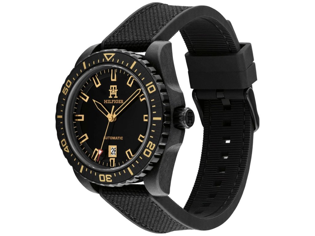 HODINKY TOMMY HILFIGER MAN 1792159 (42MM). Typ mechanizmu: TYP: AUTOMATICKÝ. Displej: TYP: ANALÓGOVÝ. Materiál puzdra: MATERIÁL: NEREZOVÁ OCEĽ. Farba puzdra: FARBA PUZDRA: ČIERNA. Materiál náramku: MATERIÁL NÁRAMKU: SILIKÓN. Farba náramku: FARBA NÁRAMKU: ČIERNA. Farba ciferníka: ČIERNA. Typ skla: MINERÁLNE. Kľučka: BUCKLE. Priemer ciferníka: dĹŽKA CIFERNÍKA: 42MM. Ponoriteľnosť: 5ATM