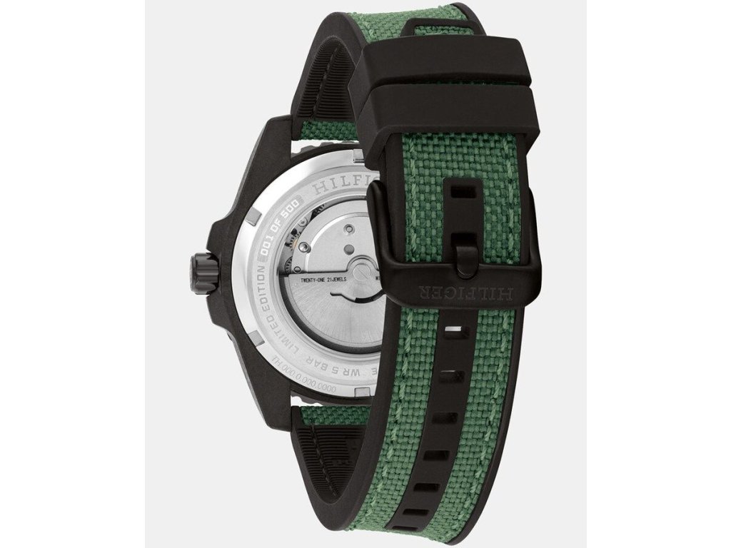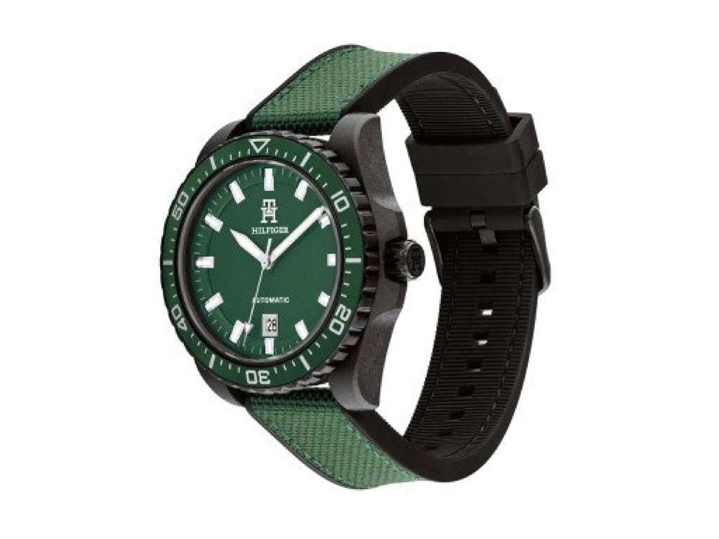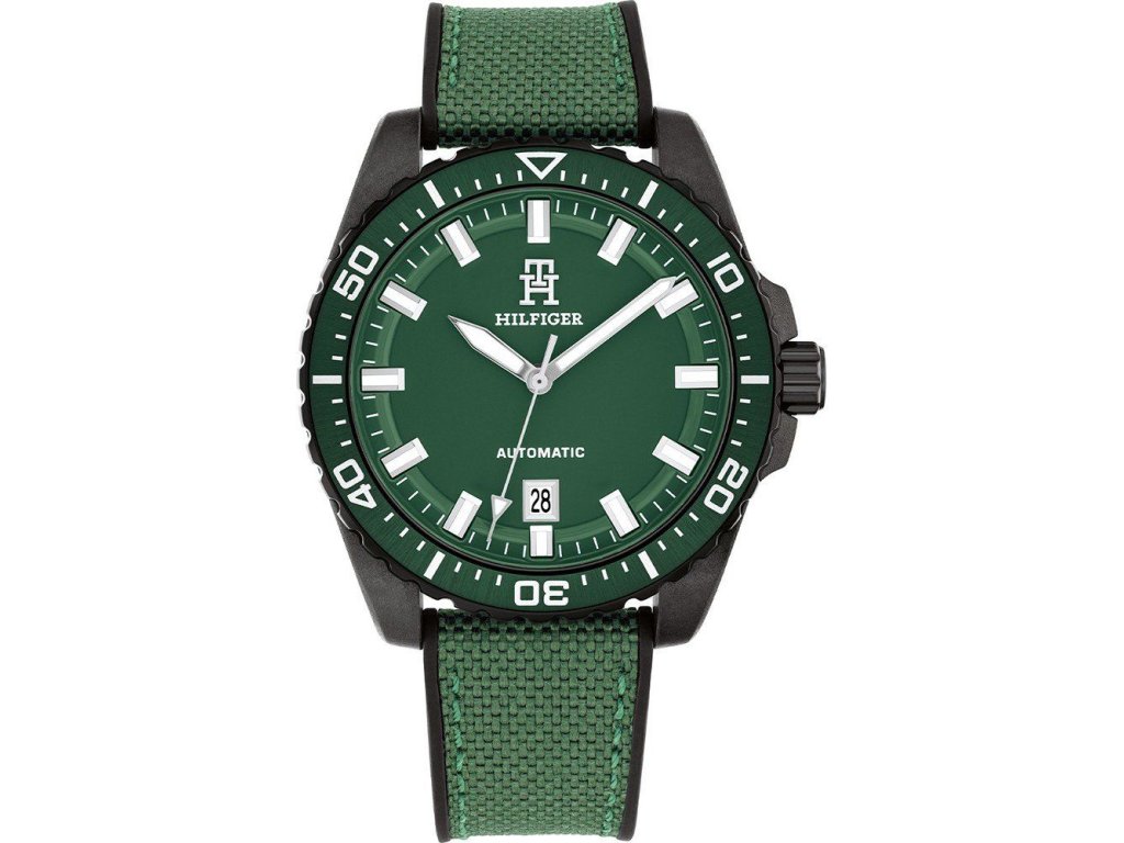 HODINKY TOMMY HILFIGER MAN 1792161 (42MM). Typ mechanizmu: TYP: AUTOMATICKÝ. Displej: TYP: ANALÓGOVÝ. Materiál puzdra: MATERIÁL: NEREZOVÁ OCEĽ. Farba puzdra: FARBA PUZDRA: ČIERNA. Materiál náramku: MATERIÁL NÁRAMKU: NYLON. Farba náramku: FARBA NÁRAMKU: ZELENÁ. Farba ciferníka: FARBA NÁRAMKU: ZELENÁ. Typ skla: SKLÍČKO: MINERÁLNE. Kľučka: BUCKLE. Priemer ciferníka: dĹŽKA CIFERNÍKA: 42MM. Ponorný: 5ATM