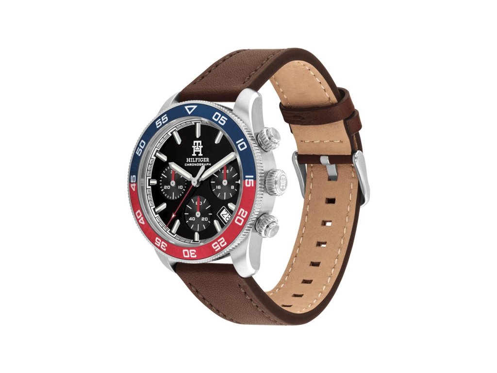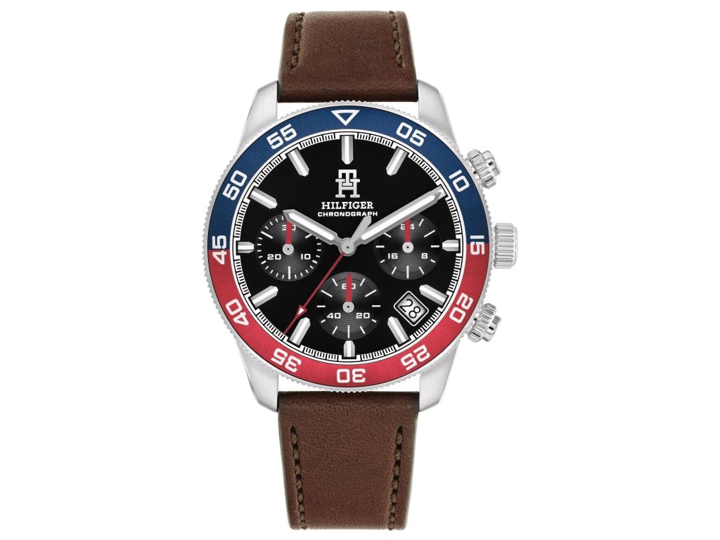 HODINKY TOMMY HILFIGER MAN 1792166 (40MM). Typ mechanizmu: QUARTZ. Displej: HODINKY: ANALOGICKÉ. Materiál puzdra: MATERIÁL: NEHRDZAVEJÚCA OCEĽ. Farba puzdra: FARBA PUZDRA: ŠEDÁ. Materiál náramku: MATERIÁL NÁRAMKU: KOŽA. Farba náramku: FARBA NÁRAMKU: HNEDÁ. Farba ciferníka: ČIERNA. Typ skla: SKLÍČKO: MINERÁLNE. Uzáver: BUCKLE. Priemer ciferníka: dĹŽKA CIFERNÍKA: 40MM. Ponoriteľnosť: 5ATM