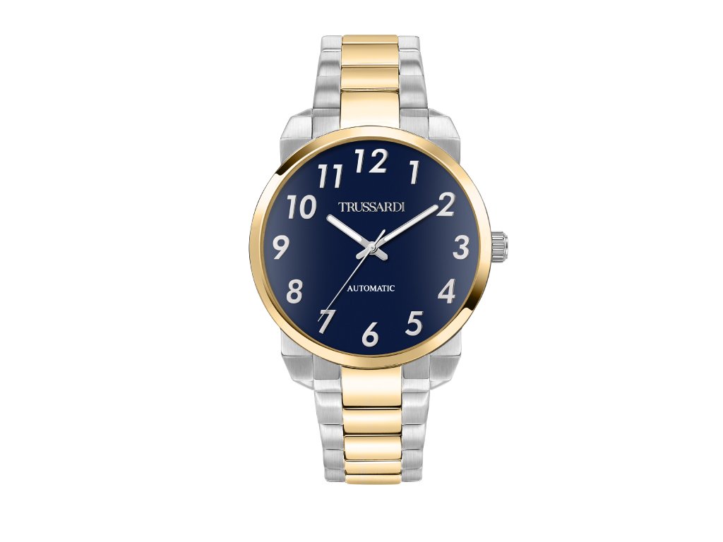 HODINKY TRUSSARDI MAN R2423154001 (40MM). Typ mechanizmu: TYP: AUTOMATICKÝ. Displej: TYP: ANALÓGOVÝ. Materiál puzdra: MATERIÁL PUZDRA: OCEĽ. Farba puzdra: . Materiál náramku:: MATERIÁL NÁRAMKU: NEHRDZAVEJÚCA OCEĽ. Farba náramku: ZLATÁ. Farba ciferníka: MODRÁ. Typ skla: SKLÍČKO: MINERÁLNE. Clousure: SKLENENÉ SKLO: FOLD-OUT. Priemer ciferníka: dĹŽKA CIFERNÍKA: 40 MM. Ponoriteľnosť: 5 ATM