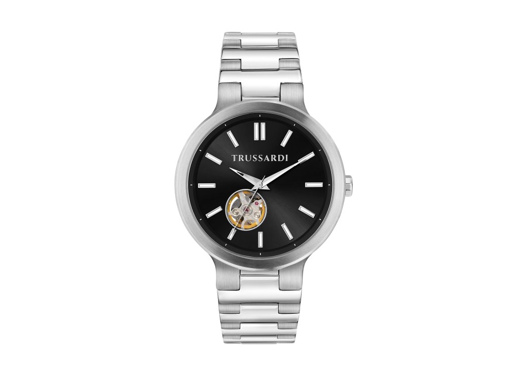 HODINKY TRUSSARDI MAN R2423164001 (41MM). Typ mechanizmu: TYP: AUTOMATICKÝ. Displej: TYP: ANALÓGOVÝ. Materiál puzdra: MATERIÁL PUZDRA: OCEĽ. Farba puzdra: FARBA PUZDRA: ŠEDÁ. Materiál náramku: MATERIÁL: NEHRDZAVEJÚCA OCEĽ. Farba náramku: FARBA NÁRAMKU: ŠEDÁ. Farba ciferníka: ČIERNA. Typ skla: SKLÍČKO: MINERÁLNE. Clousure: Hodinky: potápačská pracka s tlačidlami. Priemer ciferníka: pRIEMER CIFERNÍKA: 41MM. Ponoriteľnosť: 5 ATM