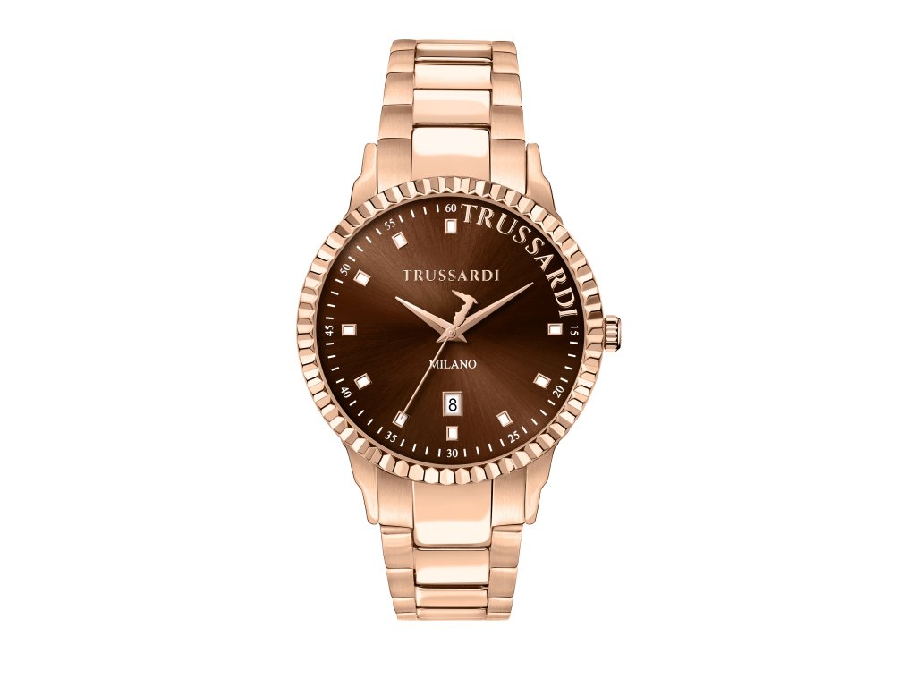 HODINKY TRUSSARDI MAN R2453141008 (43MM). Typ mechanizmu: QUARTZ. Displej: HODINKY: ANALÓGOVÉ. Materiál puzdra: MATERIÁL PUZDRA: OCEĽ. Farba puzdra: . Materiál náramku:: KOV. Farba náramku: FARBA NÁRAMKU: RUŽOVÁ. Farba ciferníka: HNEDÁ. Typ skla: SKLÍČKO: MINERÁLNE. Clousure: SKLENENÉ SKLO: FOLD-OUT. Priemer ciferníka: dĹŽKA CIFERNÍKA: 43 MM. Ponoriteľnosť: 5 ATM