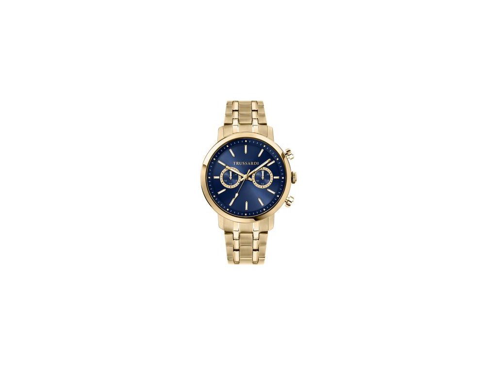 HODINKY TRUSSARDI MAN R2453147002 (43MM). Typ mechanizmu: QUARTZ. Displej: TYP: ANALÓGOVÝ. Materiál puzdra: MATERIÁL: NEHRDZAVEJÚCA OCEĽ. Farba puzdra: FARBA: ZLATÁ. Materiál náramku: MATERIÁL NÁRAMKU: NEHRDZAVEJÚCA OCEĽ. Farba náramku: ZLATÁ. Farba ciferníka: MODRÁ. Typ skla: SKLÍČKO: MINERÁLNE. Clousure: BUTTERFLY. Priemer ciferníka: dĹŽKA CIFERNÍKA: 43 MM. Ponorný: 5ATM