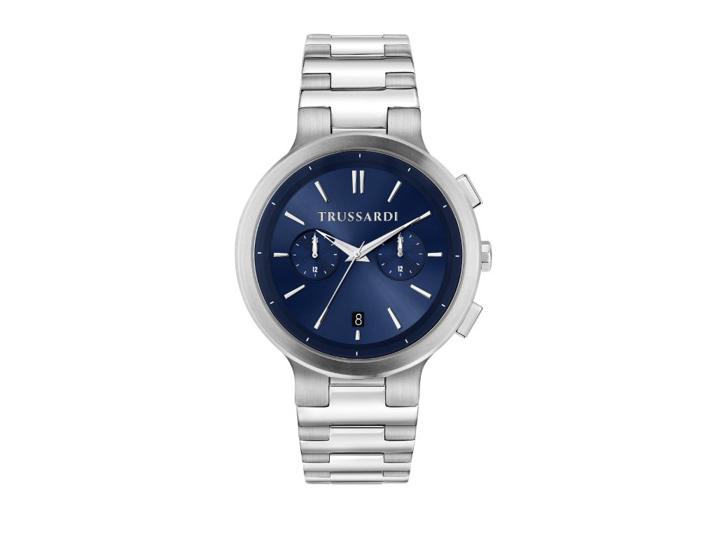 HODINKY TRUSSARDI MAN R2453164004 (43MM). Typ mechanizmu: QUARTZ. Displej: HODINKY: ANALOGICKÉ. Materiál puzdra: MATERIÁL PUZDRA: OCEĽ. Farba puzdra: FARBA PUZDRA: ŠEDÁ. Materiál náramku: MATERIÁL: NEHRDZAVEJÚCA OCEĽ. Farba náramku: FARBA NÁRAMKU: ŠEDÁ. Farba ciferníka: MODRÁ. Typ skla: SKLÍČKO: MINERÁLNE. Clousure: Hodinky: potápačská pracka s tlačidlami. Priemer ciferníka: dĹŽKA CIFERNÍKA: 43MM. Ponoriteľnosť: 5 ATM