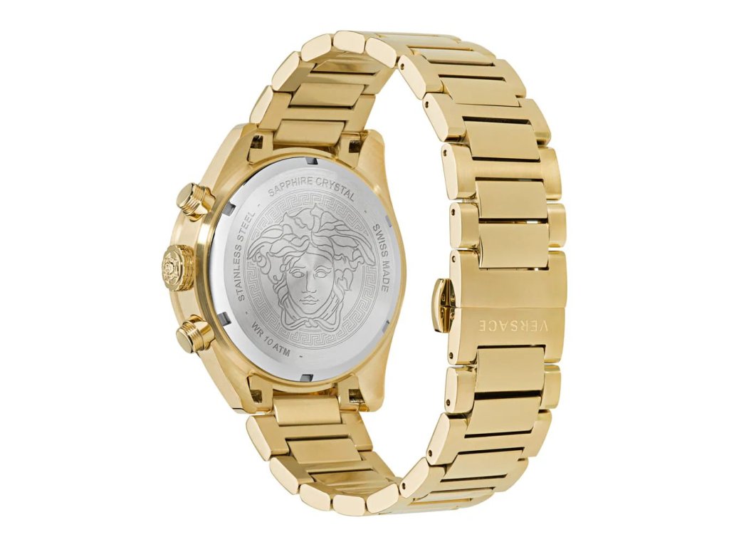 HODINKY VERSACE MAN VE6K00523 (43MM). Typ mechanizmu: QUARTZ. Displej: HODINKY: ANALÓGOVÉ. Materiál puzdra: MATERIÁL: NEHRDZAVEJÚCA OCEĽ. Farba puzdra: FARBA: ZLATÁ. Materiál náramku: MATERIÁL NÁRAMKU: NEHRDZAVEJÚCA OCEĽ. Farba náramku: ZLATÁ. Farba ciferníka: ČIERNA. Typ skla: TYP SKLA: SAPPHIRE. Clousure: TLAK. Priemer ciferníka: dĹŽKA CIFERNÍKA: 43 MM. Ponorný: 10ATM