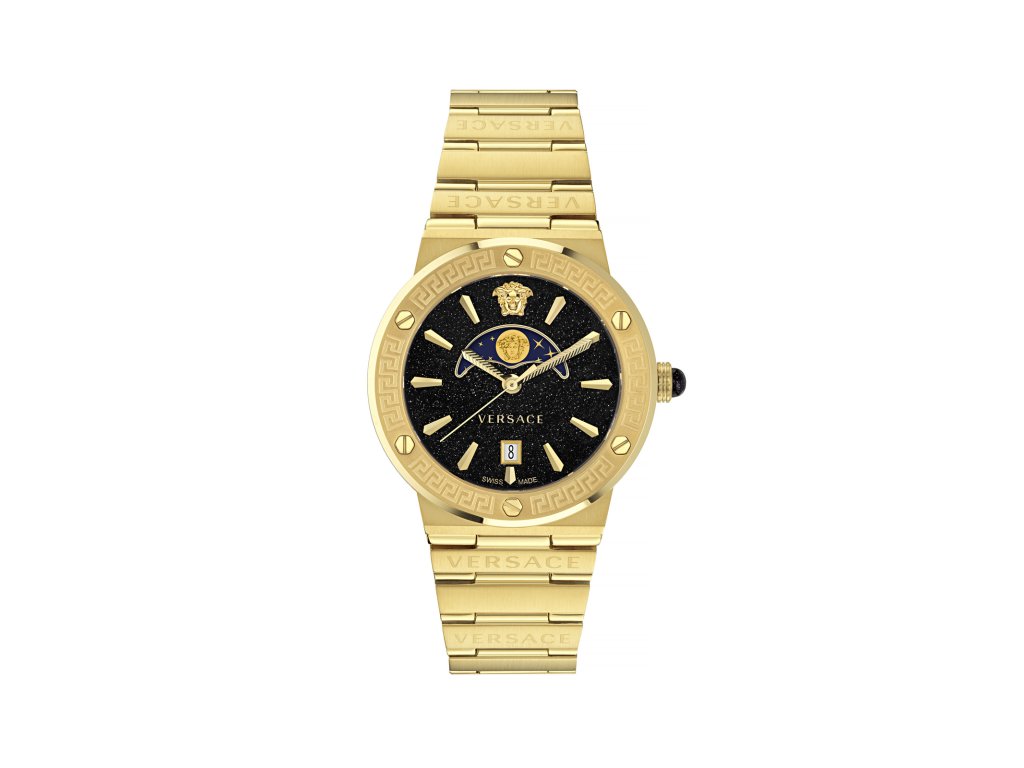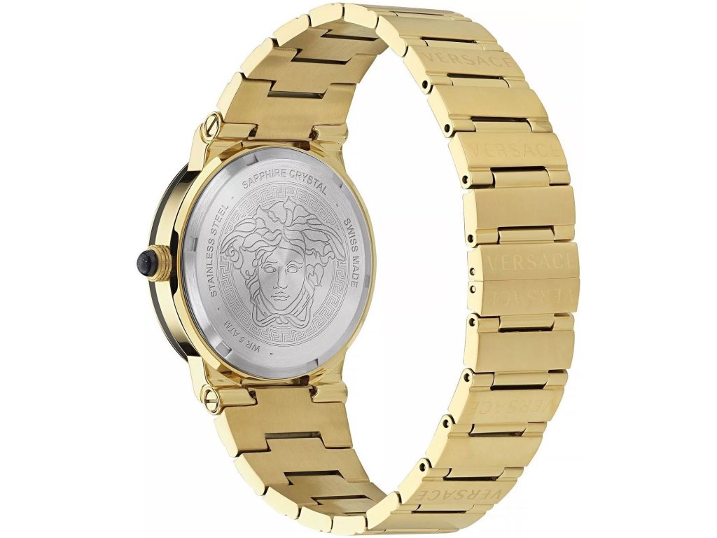 HODINKY VERSACE MAN VE7G00323 (38MM). Typ mechanizmu: QUARTZ. Displej: HODINKY: ANALÓGOVÉ. Materiál puzdra: MATERIÁL: NEHRDZAVEJÚCA OCEĽ. Farba puzdra: FARBA: ZLATÁ. Materiál náramku: MATERIÁL NÁRAMKU: NEHRDZAVEJÚCA OCEĽ. Farba náramku: ZLATÁ. Farba ciferníka: ČIERNA. Typ skla: TYP SKLA: SAPPHIRE. Clousure: TLAK. Priemer ciferníka: dĹŽKA CIFERNÍKA: 38 MM. Ponorný: 5ATM