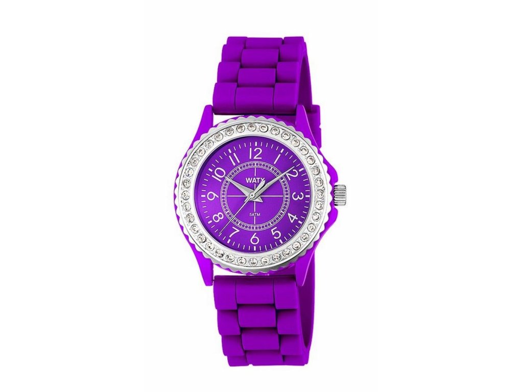 HODINKY WATXANDCO WOMAN RWA9012 (38MM). Typ mechanizmu: QUARTZ. Displej: HODINKY: ANALÓGOVÉ. Materiál puzdra: MATERIÁL PUZDRA: OCEĽ. Farba puzdra: FARBA PUZDRA: VIOLETOVÁ. Materiál náramku: MATERIÁL NÁRAMKU: GUMA. Farba náramku: FARBA NÁRAMKU: VIOLETOVÁ. Farba ciferníka: FARBA CIFERNÍKA: FIALOVÁ. Typ skla: MINERÁLNE. Kľučka: BUCKLE. Priemer ciferníka: dĹŽKA CIFERNÍKA: 38MM. Ponorný: 5ATM