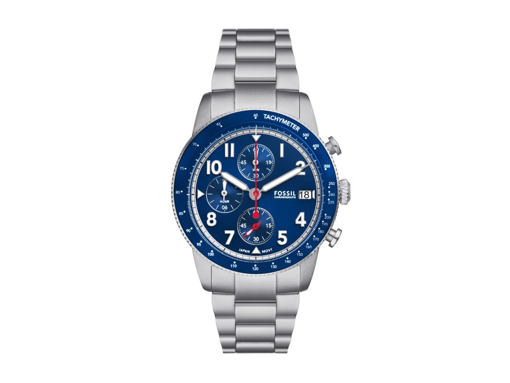 Fossil Sport Tourer dokonale odráža energiu automobilových pretekov vďaka svojmu odvážnemu dizajnu a praktickým vlastnostiam. Okrem toho je vďaka farebnému modrému ciferníku s červenými detailmi a oceľovému mechanizmu ideálnym spoločníkom na každodenné dobrodružstvá a výnimočné chvíle.