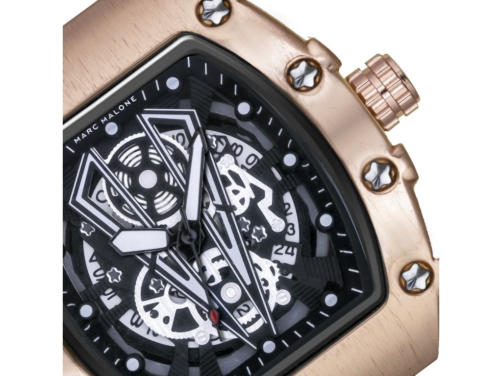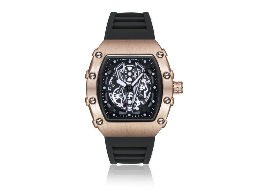 Luxusný vzhľad s moderným nádychom. Pánske hodinky Marc Malone CEE2-X001 zaujmú robustným štvorcovým puzdrom z ružového zlata a kontrastným čiernym ciferníkom. Športovo-elegantná kombinácia materiálov a farieb im dodáva osobitý štýl, ktorý vynikne pri každej príležitosti.