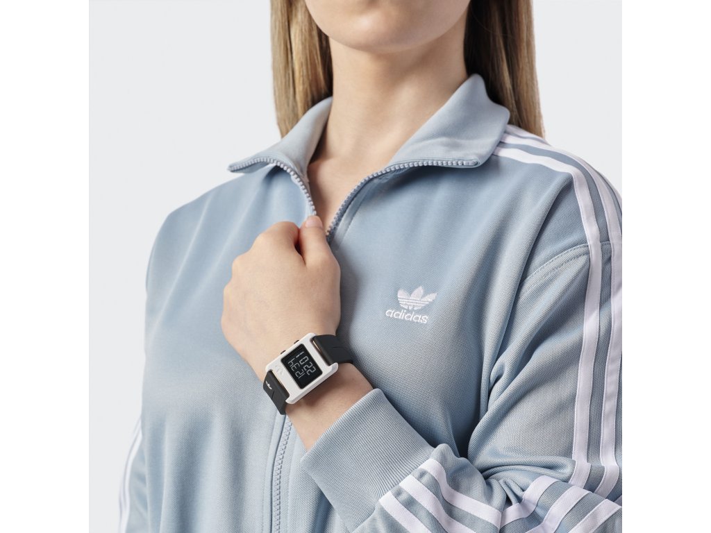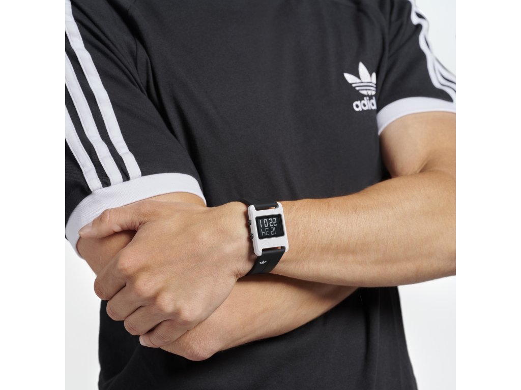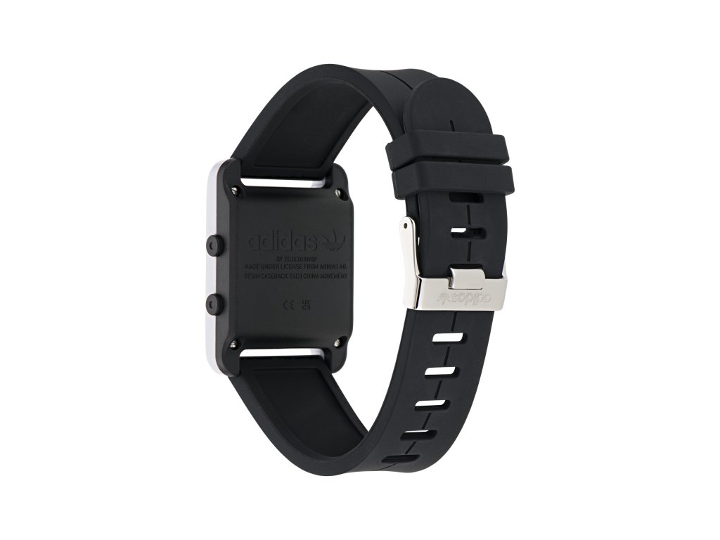 Hodinky Adidas Originals Retro Pop Digital unisex AOST23567stavia na kontraste - biele štvorcové puzdro, čierny displej a silikónový remienok. Štýl, ktorý je jednoduchý, ale rozhodne nie jemný.