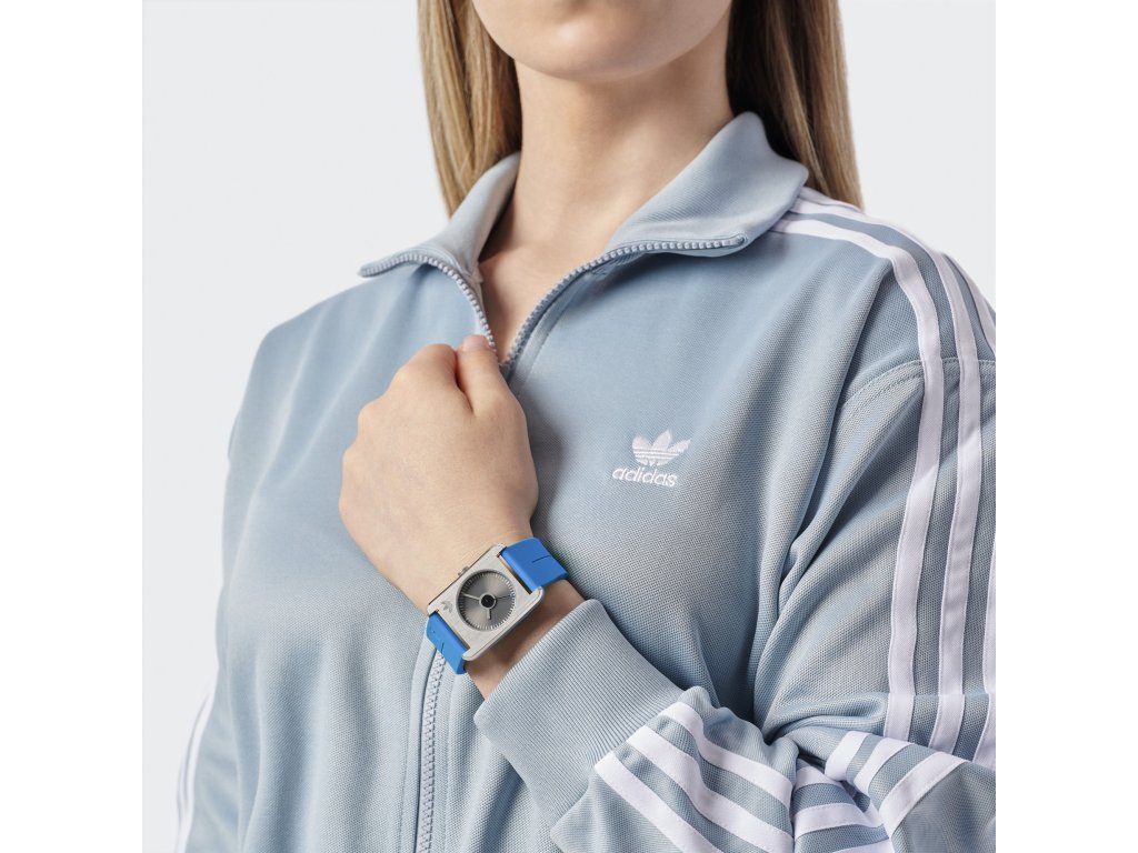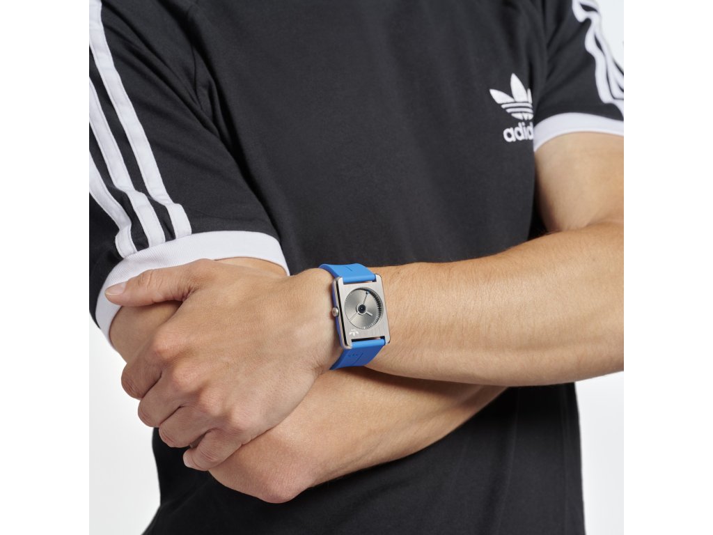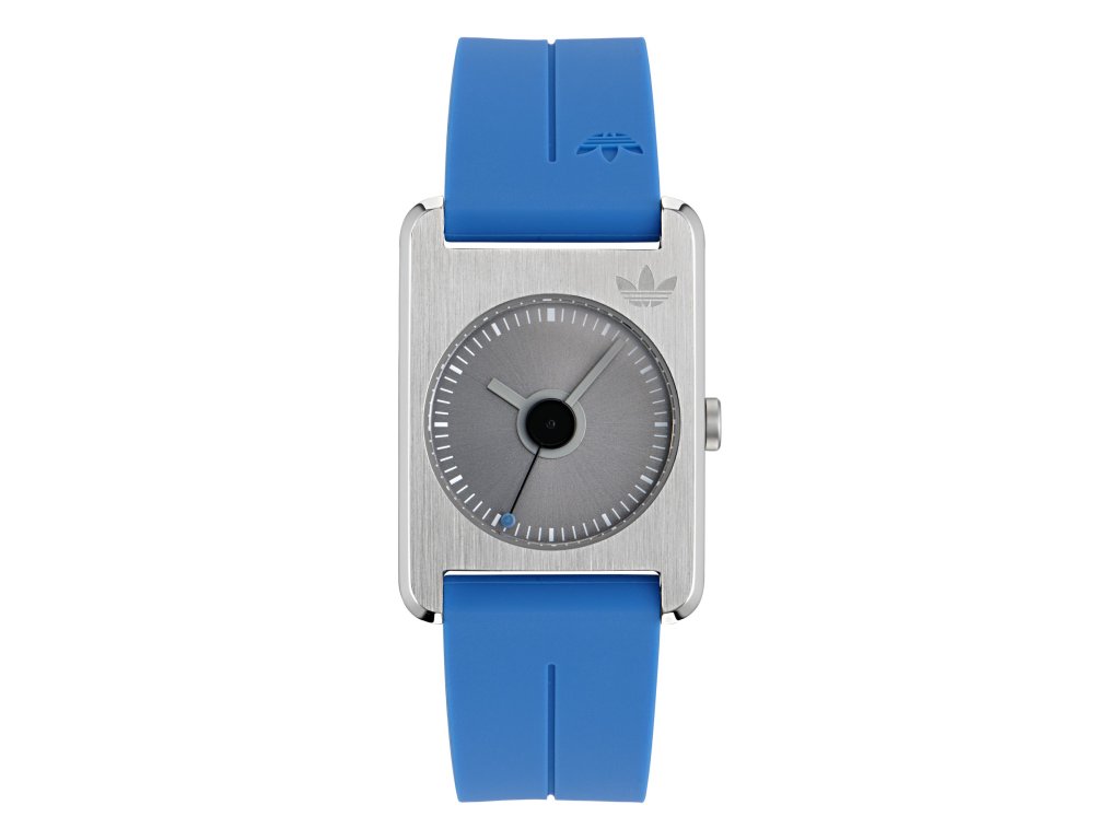 Unisex hodinky Adidas Originals Retro Pop One AOST2256 majúnetradičné štvorcové puzdro, ktoré evokuje estetiku 80. rokov. Šedý minimalistický ciferník a modrý silikónový remienok? Nečakaná kombinácia, ktorá funguje.