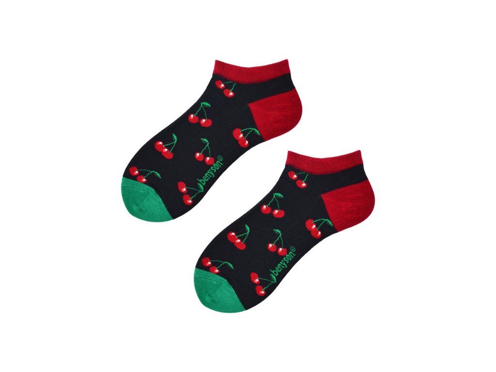 Pánske členkové ponožky Benyson - Organická bavlna (veselá téma, višne, čierna a červená)