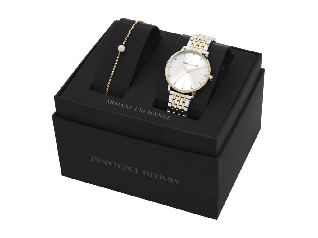 Hľadáte krásny doplnok, ktorý vkusne podčiarkne váš outfit, či už idete do spoločnosti alebo na nákupy s priateľkou? Táto súprava dámskych hodiniek a náramku Lola od spoločnosti Armani Exchangekombinuje jednoduchý a čistý dizajn so spoľahlivou funkčnosťouktoré ocení moderná žena.