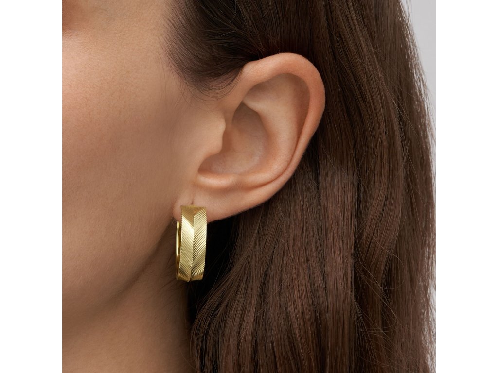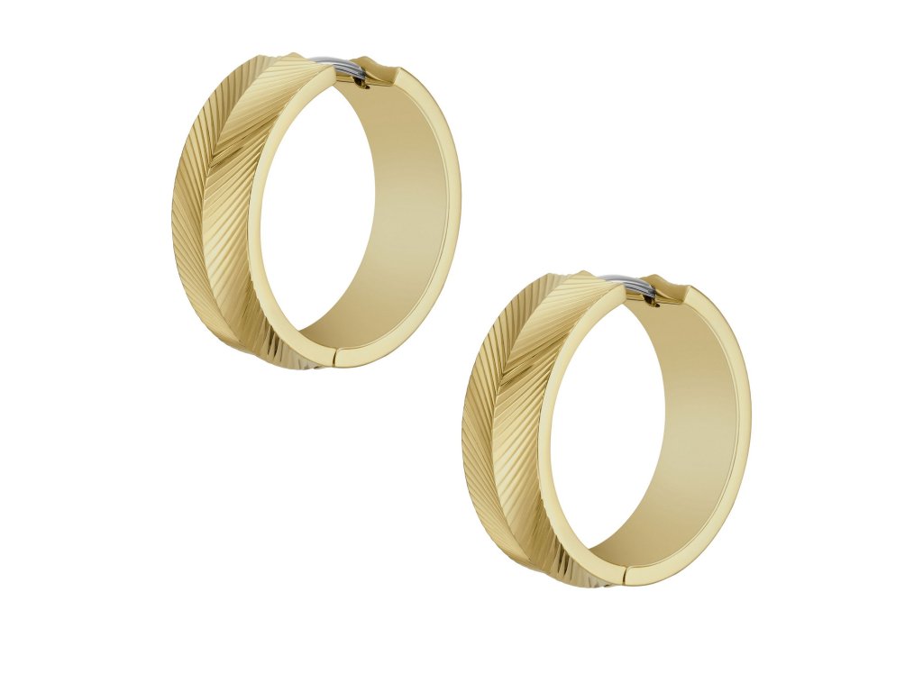 Náušnice sú vyrobené z kvalitnej nehrdzavejúcej ocele, ktorá je pozlátená.Ich jemná lineárna štruktúra sa vo svetle leskne.