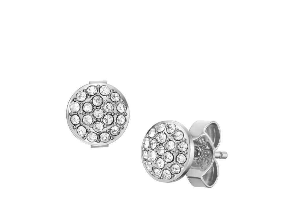 Číre kryštály zasadené do nehrdzavejúcej ocele dodajú jemný lesk a zdôraznia sofistikovaný charakter šperku. Náhrdelník má nastaviteľnú dĺžku 40,5-45,5 cm, zatiaľ čo náušnice s priemerom 0,6 cm pôsobia decentne a elegantne.