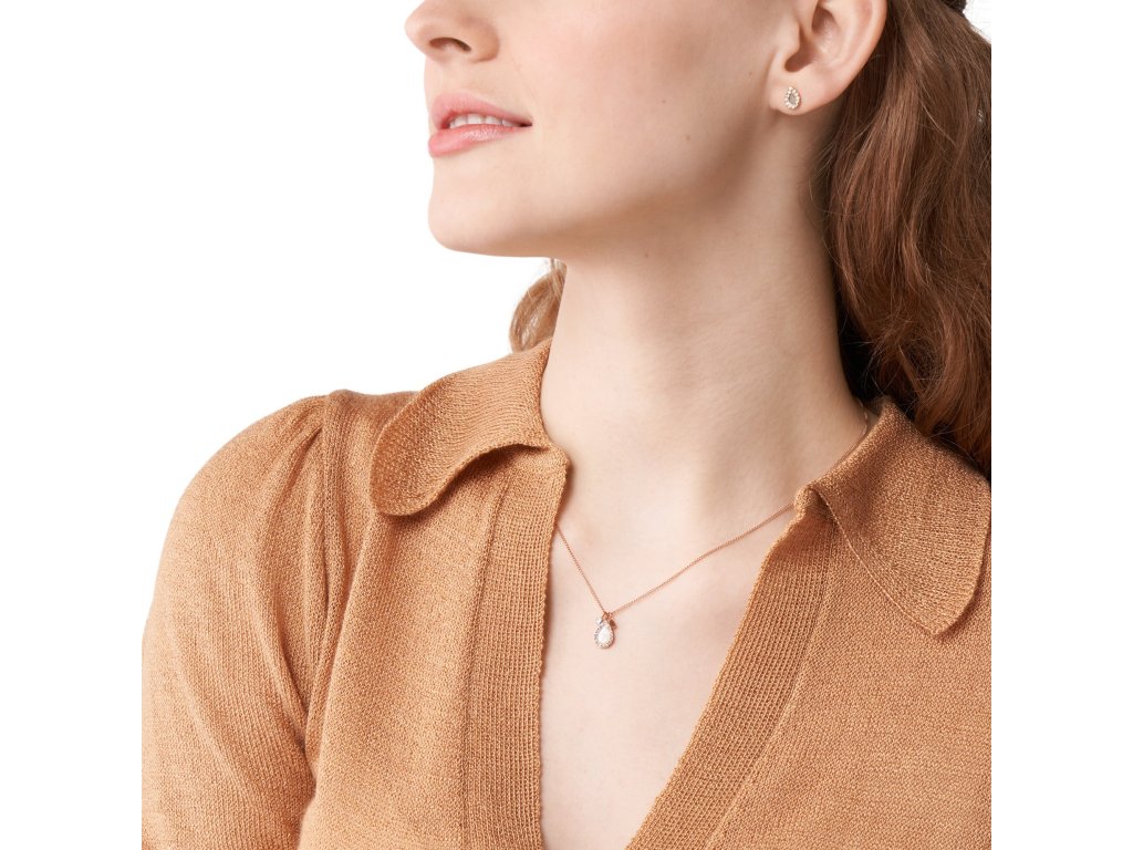 Nerezová oceľ vo farbe ružového zlata dodáva celej súprave romantický nádych, vďaka čomu pôsobí moderne a nadčasovo zároveň. Náhrdelník má dĺžku 40-45 cm a náušnice s rozmermi 0,8 × 0,6 cm sa pohodlne zapínajú na gombík.